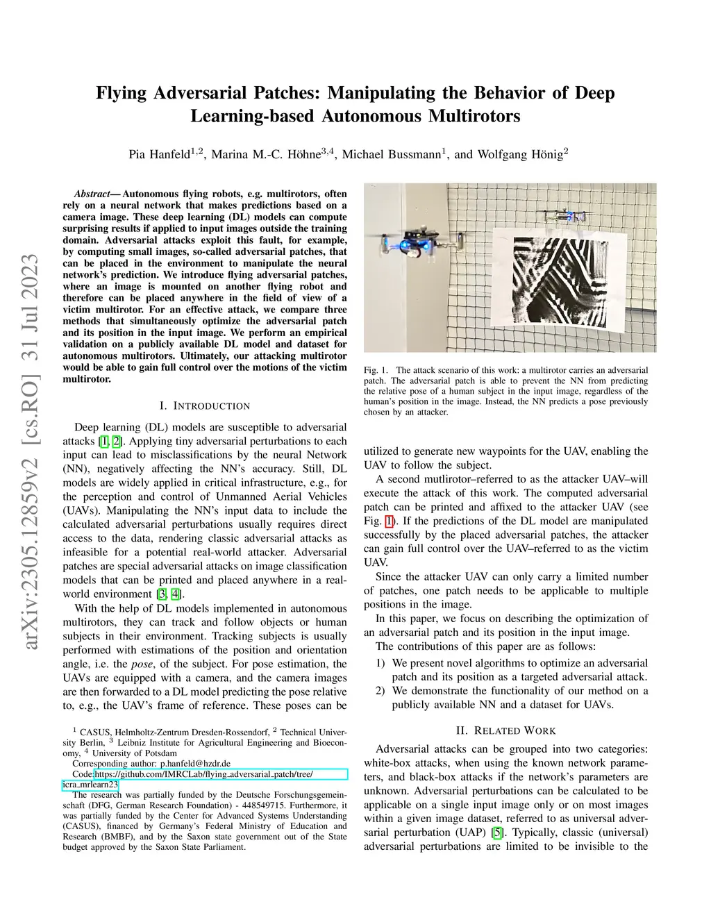 Flying Adversarial Patches: Manipulating the Behavior of Deep
