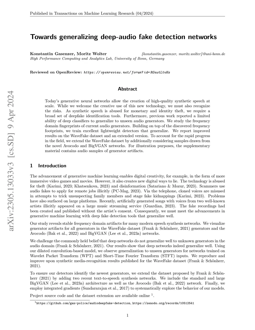 Today's generative neural networks allow the creation of high-quality synthetic speech at scale. While we welcome the creative use of this new technology, we must also recognize the risks. As synthetic speech is abused for monetary and identity theft, we require a broad set of deepfake identification tools. Furthermore, previous work reported a limited ability of deep classifiers to generalize to unseen audio generators. We study the frequency domain fingerprints of current audio generators. Building on top of the discovered frequency footprints, we train excellent lightweight detectors that generalize. We report improved results on the WaveFake dataset and an extended version. To account for the rapid progress in the field, we extend the WaveFake dataset by additionally considering samples drawn from the novel Avocodo and BigVGAN networks. For illustration purposes, the supplementary material contains audio samples of generator artifacts.