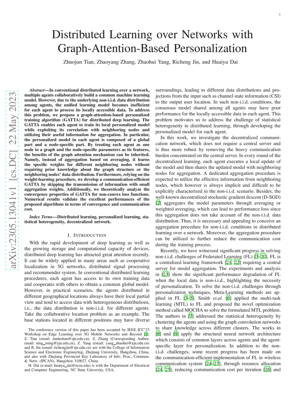 In conventional distributed learning over a network, multiple agents collaboratively build a common machine learning model. However, due to the underlying non-i.i.d. data distribution among agents, the unified learning model becomes inefficient for each agent to process its locally accessible data. To address this problem, we propose a graph-attention-based personalized training algorithm (GATTA) for distributed deep learning. The GATTA enables each agent to train its local personalized model while exploiting its correlation with neighboring nodes and utilizing their useful information for aggregation. In particular, the personalized model in each agent is composed of a global part and a node-specific part. By treating each agent as one node in a graph and the node-specific parameters as its features, the benefits of the graph attention mechanism can be inherited. Namely, instead of aggregation based on averaging, it learns the specific weights for different neighboring nodes without requiring prior knowledge about the graph structure or the neighboring nodes' data distribution. Furthermore, relying on the weight-learning procedure, we develop a communication-efficient GATTA by skipping the transmission of information with small aggregation weights. Additionally, we theoretically analyze the convergence properties of GATTA for non-convex loss functions. Numerical results validate the excellent performances of the proposed algorithms in terms of convergence and communication cost.