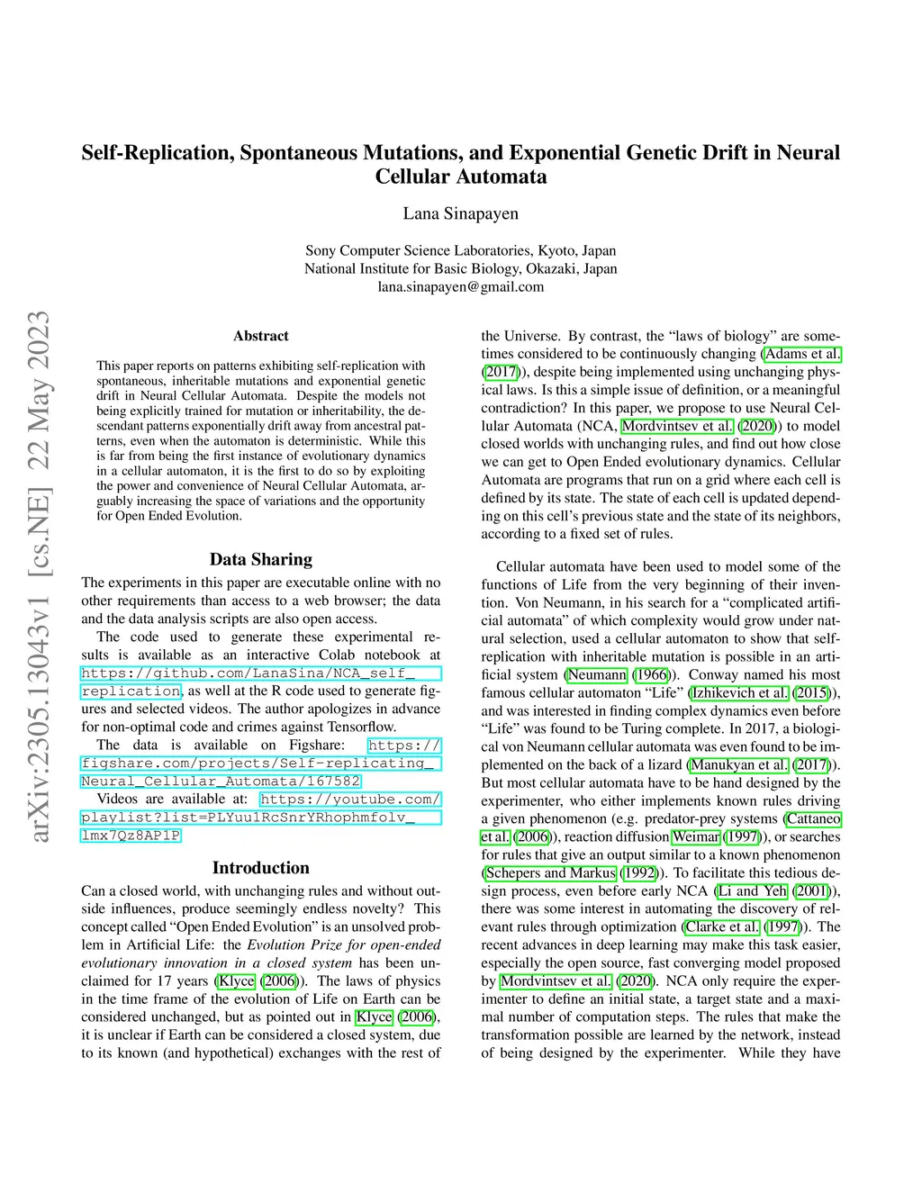 This paper reports on patterns exhibiting self-replication with spontaneous, inheritable mutations and exponential genetic drift in Neural Cellular Automata. Despite the models not being explicitly trained for mutation or inheritability, the descendant patterns exponentially drift away from ancestral patterns, even when the automaton is deterministic. While this is far from being the first instance of evolutionary dynamics in a cellular automaton, it is the first to do so by exploiting the power and convenience of Neural Cellular Automata, arguably increasing the space of variations and the opportunity for Open Ended Evolution.