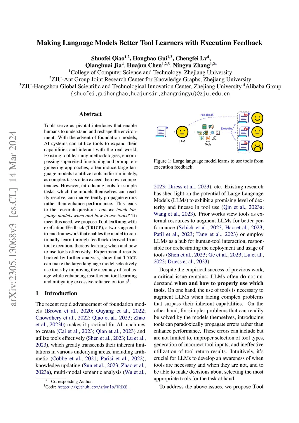 Tools serve as pivotal interfaces that enable humans to understand and reshape the environment. With the advent of foundation models, AI systems can utilize tools to expand their capabilities and interact with the real world. Existing tool learning methodologies, encompassing supervised fine-tuning and prompt engineering approaches, often induce large language models to utilize tools indiscriminately, as complex tasks often exceed their own competencies. However, introducing tools for simple tasks, which the models themselves can readily resolve, can inadvertently propagate errors rather than enhance performance. This leads to the research question: can we teach language models when and how to use tools? To meet this need, we propose Tool leaRning wIth exeCution fEedback (TRICE), a two-stage end-to-end framework that enables the model to continually learn through feedback derived from tool execution, thereby learning when and how to use tools effectively. Experimental results, backed by further analysis, show that TRICE can make the large language model selectively use tools by improving the accuracy of tool usage while enhancing insufficient tool learning and mitigating excessive reliance on tools. Code is available at https://github.com/zjunlp/TRICE.