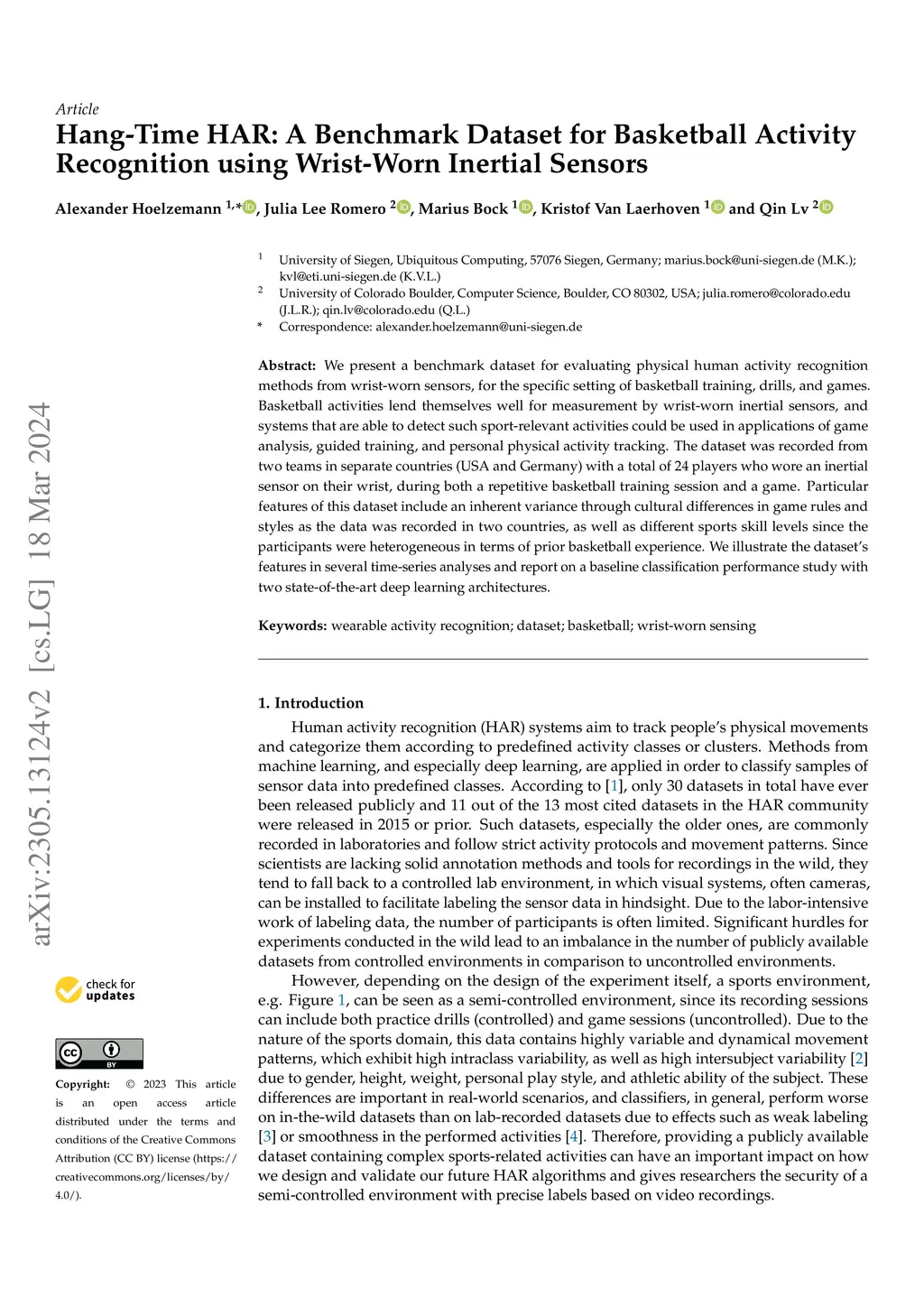 Hang-Time HAR: A Benchmark Dataset for Basketball Activity Recognition