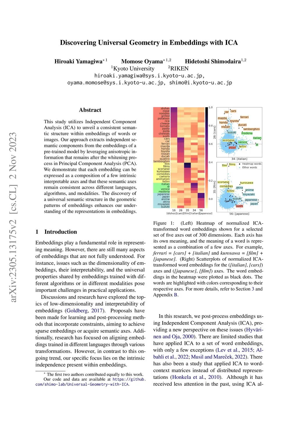 Discovering Universal Geometry in Embeddings with ICA