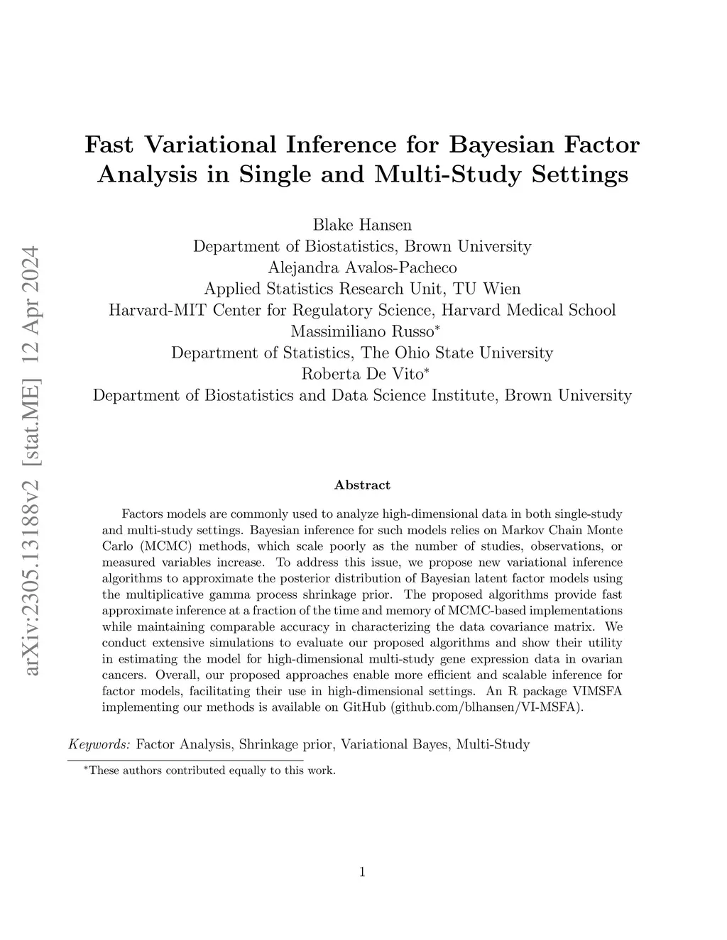 Fast Variational Inference for Bayesian Factor Analysis in Single and