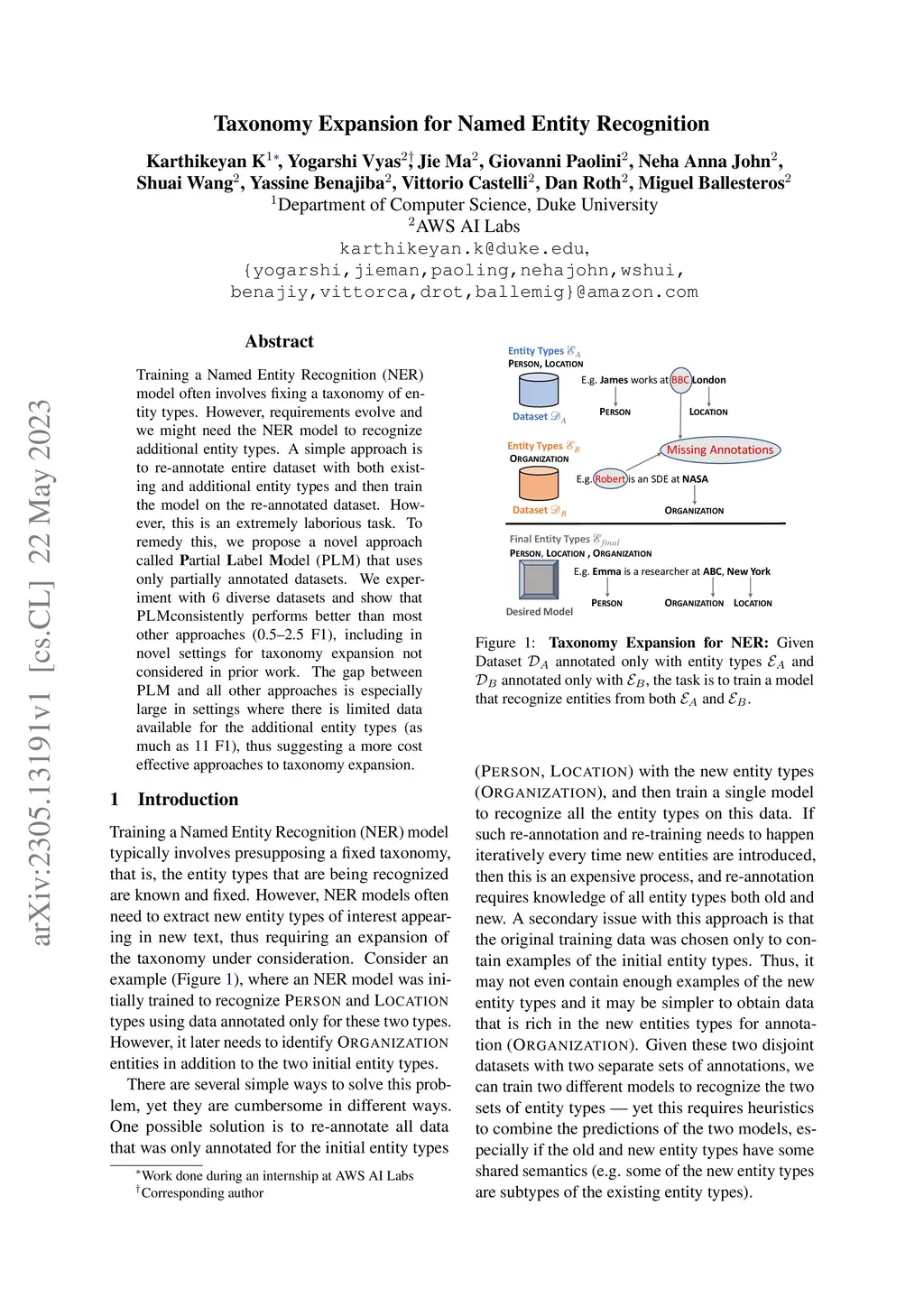 Training a Named Entity Recognition (NER) model often involves fixing a taxonomy of entity types. However, requirements evolve and we might need the NER model to recognize additional entity types. A simple approach is to re-annotate entire dataset with both existing and additional entity types and then train the model on the re-annotated dataset. However, this is an extremely laborious task. To remedy this, we propose a novel approach called Partial Label Model (PLM) that uses only partially annotated datasets. We experiment with 6 diverse datasets and show that PLM consistently performs better than most other approaches (0.5 - 2.5 F1), including in novel settings for taxonomy expansion not considered in prior work. The gap between PLM and all other approaches is especially large in settings where there is limited data available for the additional entity types (as much as 11 F1), thus suggesting a more cost effective approaches to taxonomy expansion.