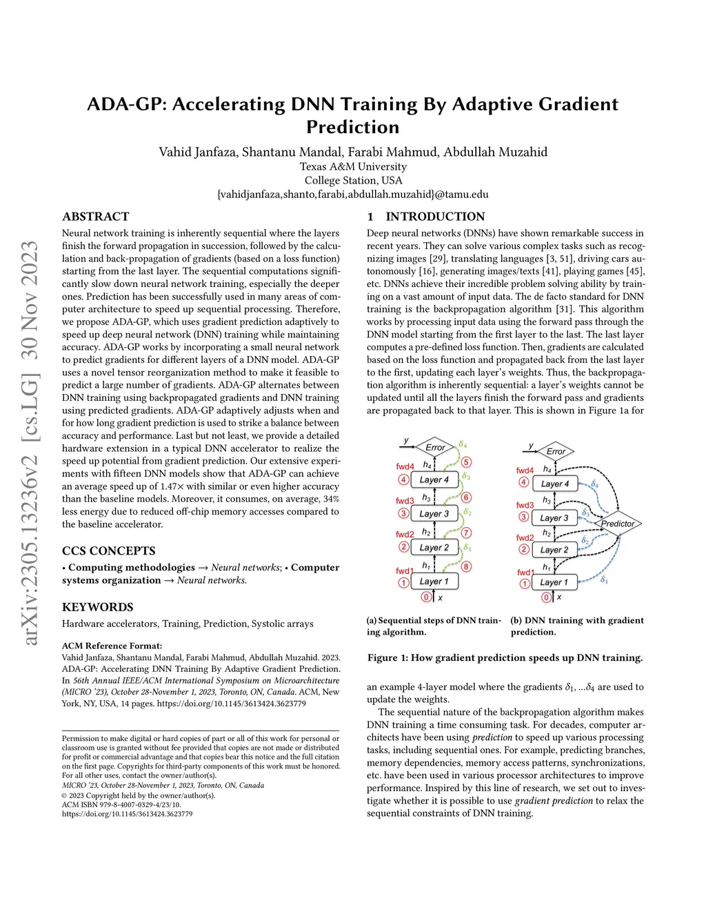 ADA-GP: Accelerating DNN Training By Adaptive Gradient Prediction
