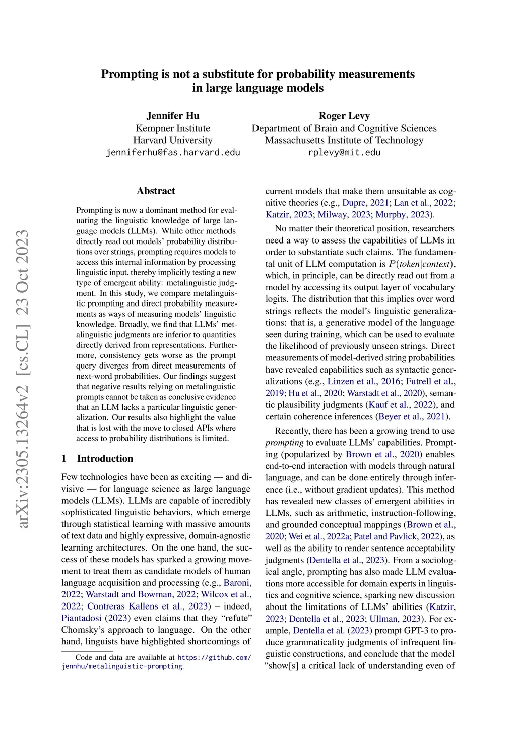 Prompting is now a dominant method for evaluating the linguistic knowledge of large language models (LLMs). While other methods directly read out models' probability distributions over strings, prompting requires models to access this internal information by processing linguistic input, thereby implicitly testing a new type of emergent ability: metalinguistic judgment. In this study, we compare metalinguistic prompting and direct probability measurements as ways of measuring models' linguistic knowledge. Broadly, we find that LLMs' metalinguistic judgments are inferior to quantities directly derived from representations. Furthermore, consistency gets worse as the prompt query diverges from direct measurements of next-word probabilities. Our findings suggest that negative results relying on metalinguistic prompts cannot be taken as conclusive evidence that an LLM lacks a particular linguistic generalization. Our results also highlight the value that is lost with the move to closed APIs where access to probability distributions is limited.