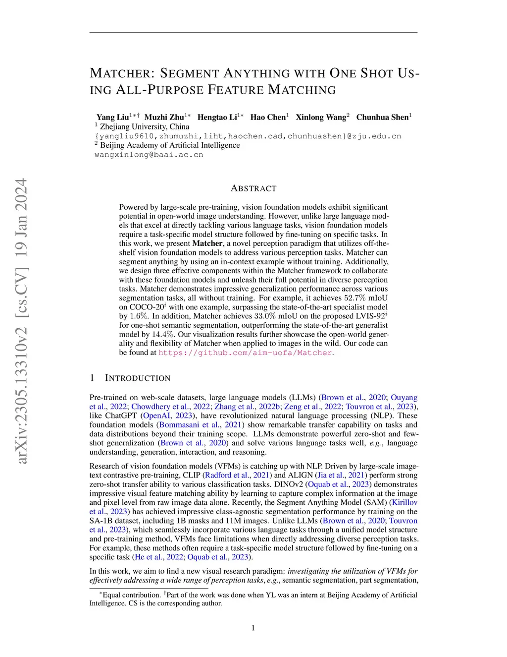 Matcher: Segment Anything with One Shot Using All-Purpose Feature