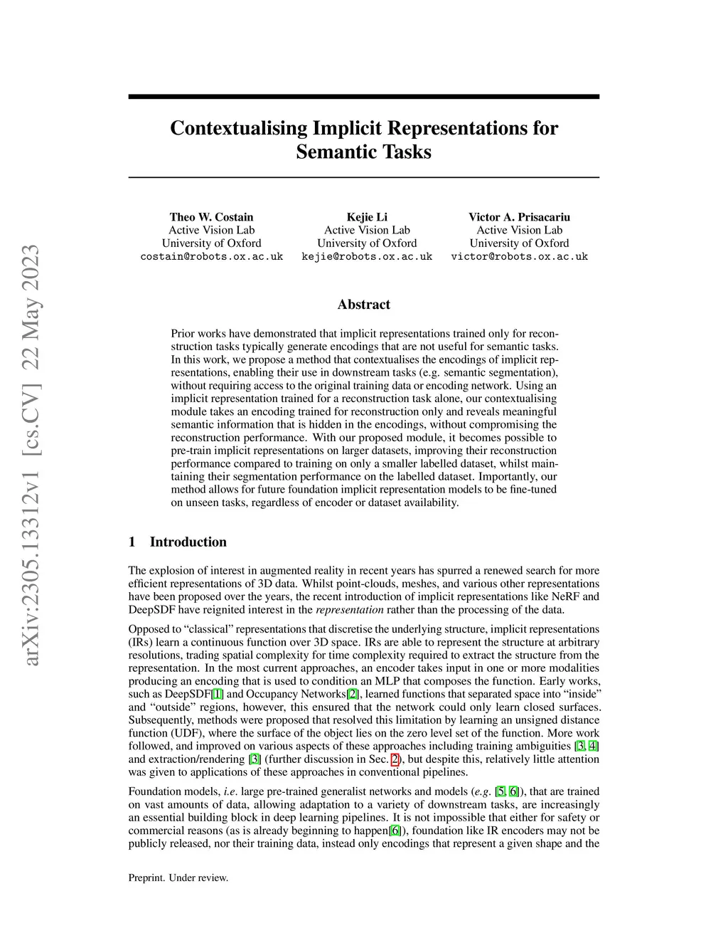 Contextualising Implicit Representations for Semantic Tasks