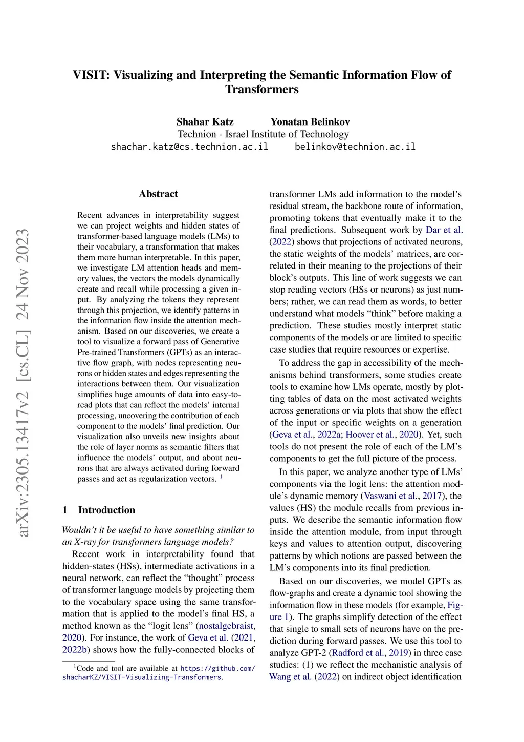Recent advances in interpretability suggest we can project weights and hidden states of transformer-based language models (LMs) to their vocabulary, a transformation that makes them human interpretable and enables us to assign semantics to what was seen only as numerical vectors. In this paper, we interpret LM attention heads and memory values, the vectors the models dynamically create and recall while processing a given input. By analyzing the tokens they represent through this projection, we identify patterns in the information flow inside the attention mechanism. Based on these discoveries, we create a tool to visualize a forward pass of Generative Pre-trained Transformers (GPTs) as an interactive flow graph, with nodes representing neurons or hidden states and edges representing the interactions between them. Our visualization simplifies huge amounts of data into easy-to-read plots that reflect why models output their results. We demonstrate the utility of our modeling by identifying the effect LM components have on the intermediate processing in the model before outputting a prediction. For instance, we discover that layer norms are used as semantic filters and find neurons that act as regularization vectors.