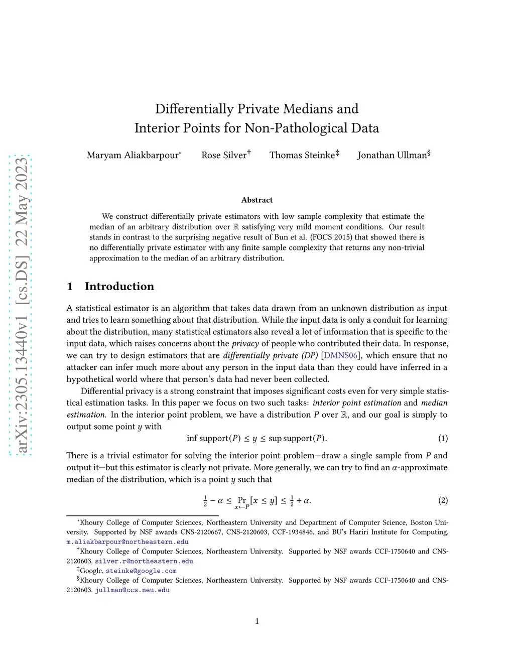 We construct differentially private estimators with low sample complexity that estimate the median of an arbitrary distribution over satisfying very mild moment conditions. Our result stands in contrast to the surprising negative result of Bun et al. (FOCS 2015) that showed there is no differentially private estimator with any finite sample complexity that returns any non-trivial approximation to the median of an arbitrary distribution.