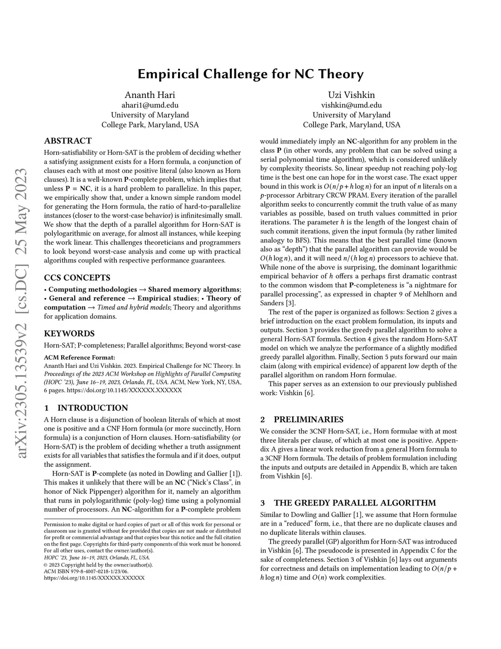 Horn-satisfiability or Horn-SAT is the problem of deciding whether a satisfying assignment exists for a Horn formula, a conjunction of clauses each with at most one positive literal (also known as Horn clauses). It is a well-known P-complete problem, which implies that unless P = NC, it is a hard problem to parallelize. In this paper, we empirically show that, under a known simple random model for generating the Horn formula, the ratio of hard-to-parallelize instances (closer to the worst-case behavior) is infinitesimally small. We show that the depth of a parallel algorithm for Horn-SAT is polylogarithmic on average, for almost all instances, while keeping the work linear. This challenges theoreticians and programmers to look beyond worst-case analysis and come up with practical algorithms coupled with respective performance guarantees.