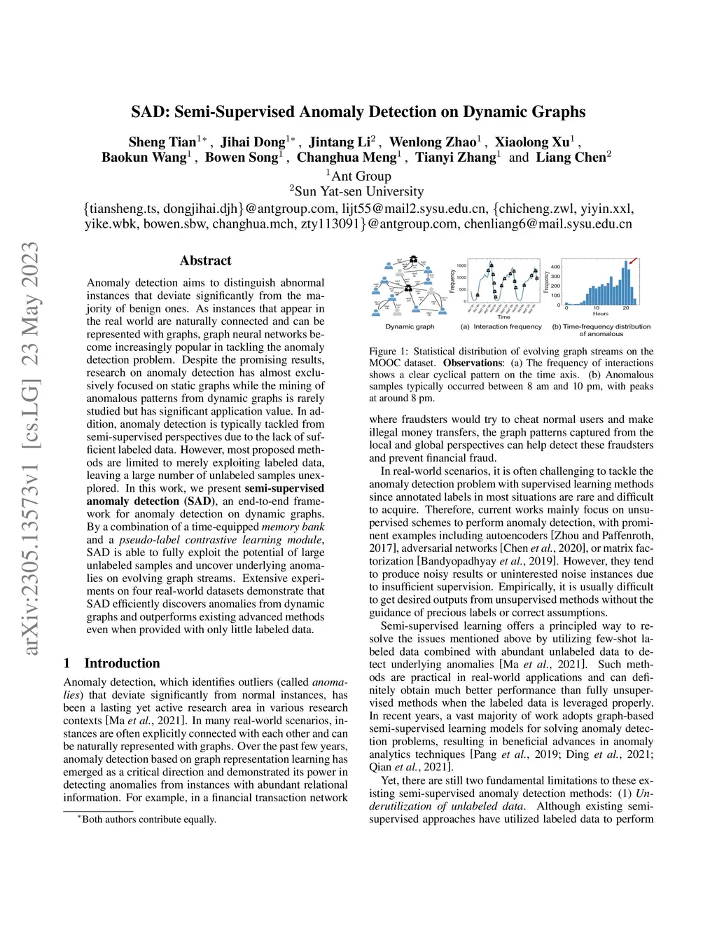 SAD: Semi-Supervised Anomaly Detection on Dynamic Graphs
