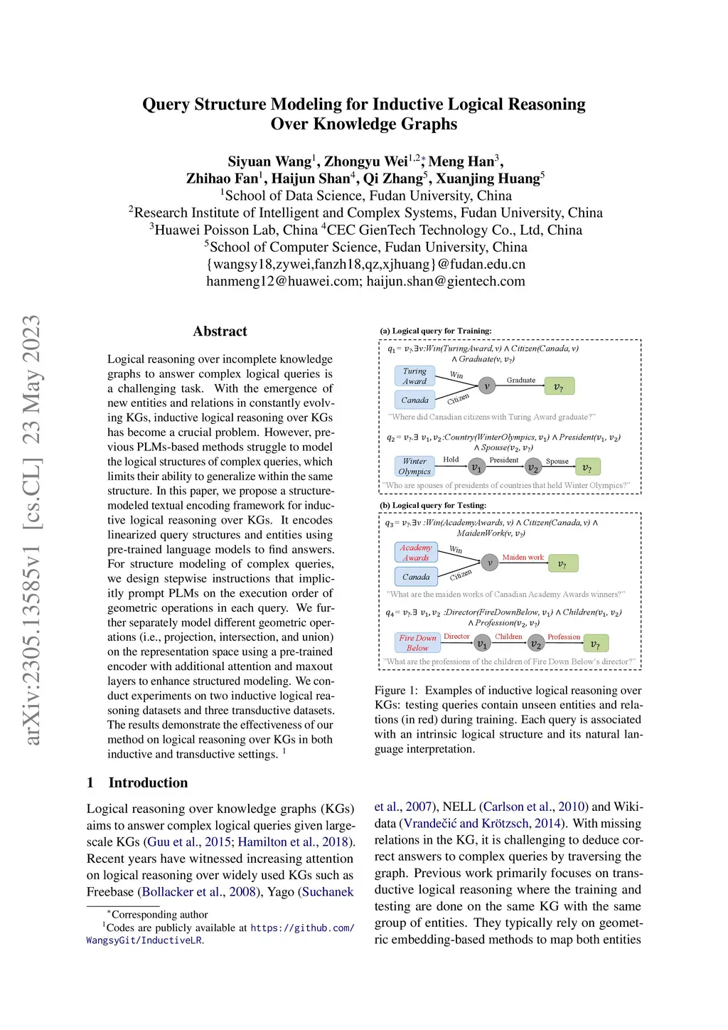 Query Structure Modeling for Inductive Logical Reasoning Over Knowledge