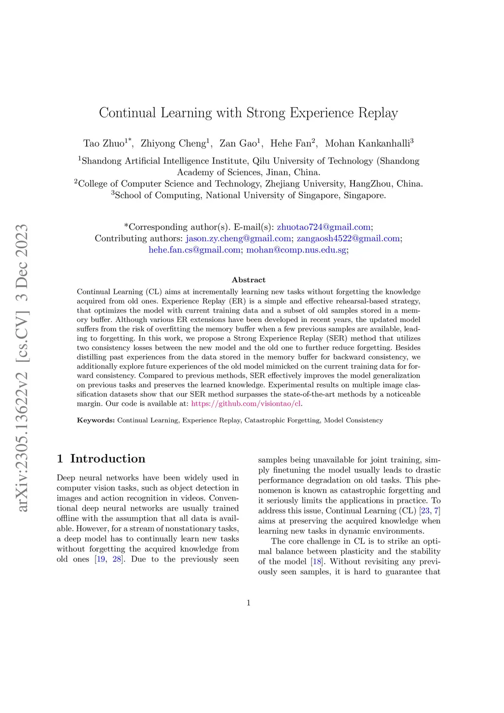 Continual Learning (CL) aims at incrementally learning new tasks without forgetting the knowledge acquired from old ones. Experience Replay (ER) is a simple and effective rehearsal-based strategy, which optimizes the model with current training data and a subset of old samples stored in a memory buffer. To further reduce forgetting, recent approaches extend ER with various techniques, such as model regularization and memory sampling. However, the prediction consistency between the new model and the old one on current training data has been seldom explored, resulting in less knowledge preserved when few previous samples are available. To address this issue, we propose a CL method with Strong Experience Replay (SER), which additionally utilizes future experiences mimicked on the current training data, besides distilling past experience from the memory buffer. In our method, the updated model will produce approximate outputs as its original ones, which can effectively preserve the acquired knowledge. Experimental results on multiple image classification datasets show that our SER method surpasses the state-of-the-art methods by a noticeable margin.
