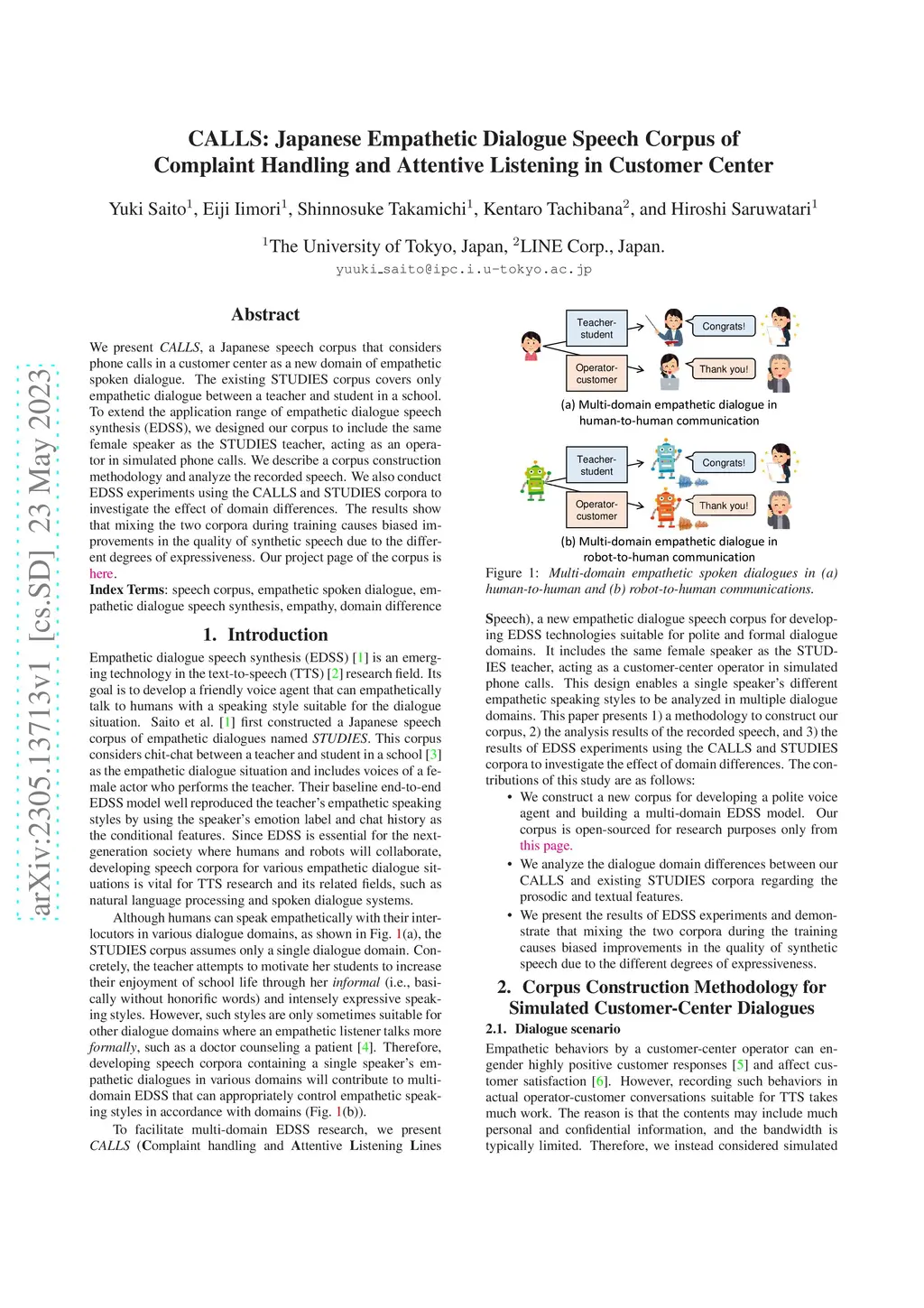 We present CALLS, a Japanese speech corpus that considers phone calls in a customer center as a new domain of empathetic spoken dialogue. The existing STUDIES corpus covers only empathetic dialogue between a teacher and student in a school. To extend the application range of empathetic dialogue speech synthesis (EDSS), we designed our corpus to include the same female speaker as the STUDIES teacher, acting as an operator in simulated phone calls. We describe a corpus construction methodology and analyze the recorded speech. We also conduct EDSS experiments using the CALLS and STUDIES corpora to investigate the effect of domain differences. The results show that mixing the two corpora during training causes biased improvements in the quality of synthetic speech due to the different degrees of expressiveness. Our project page of the corpus is http://sython.org/Corpus/STUDIES-2.