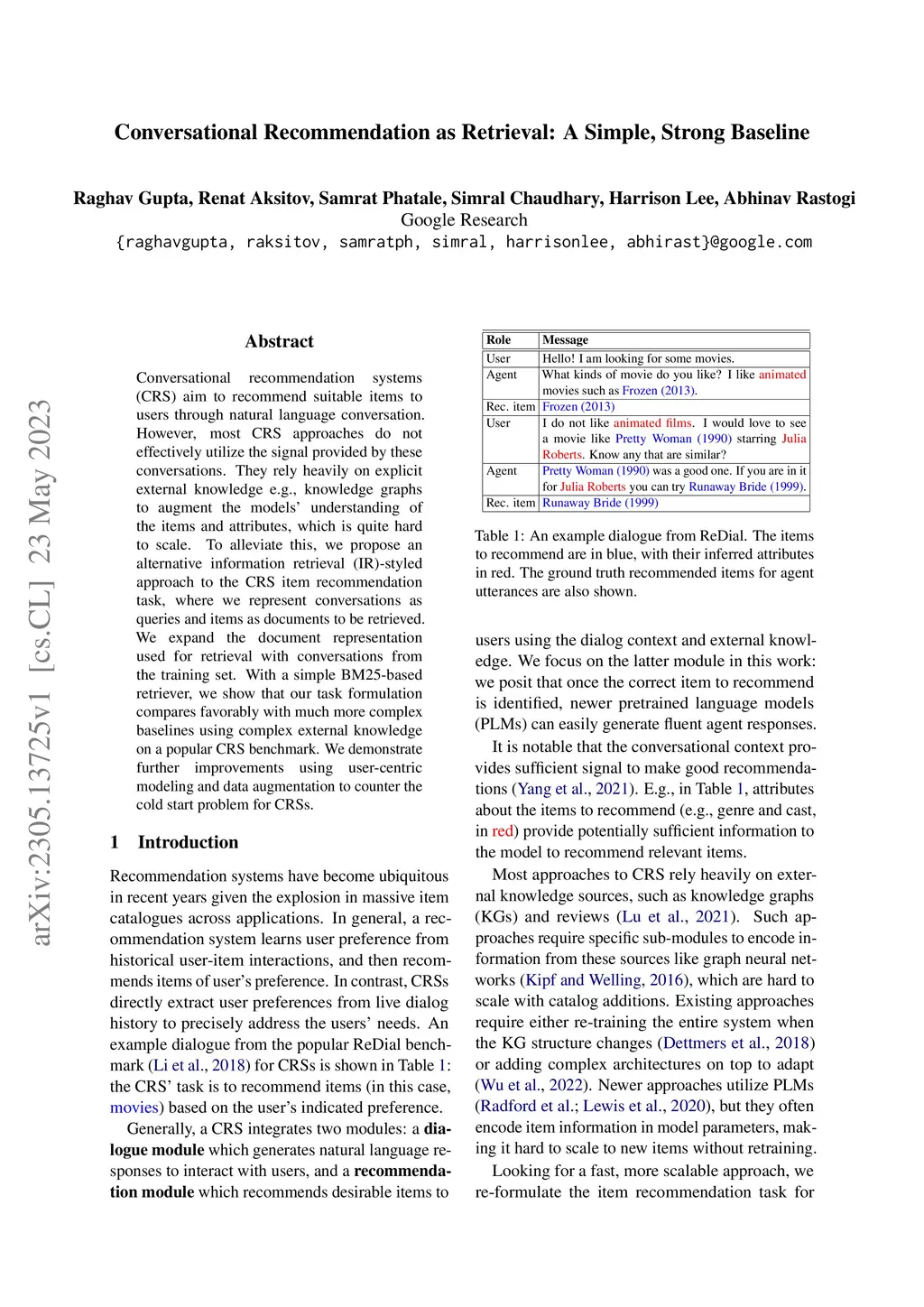Conversational Recommendation as Retrieval: A Simple, Strong Baseline