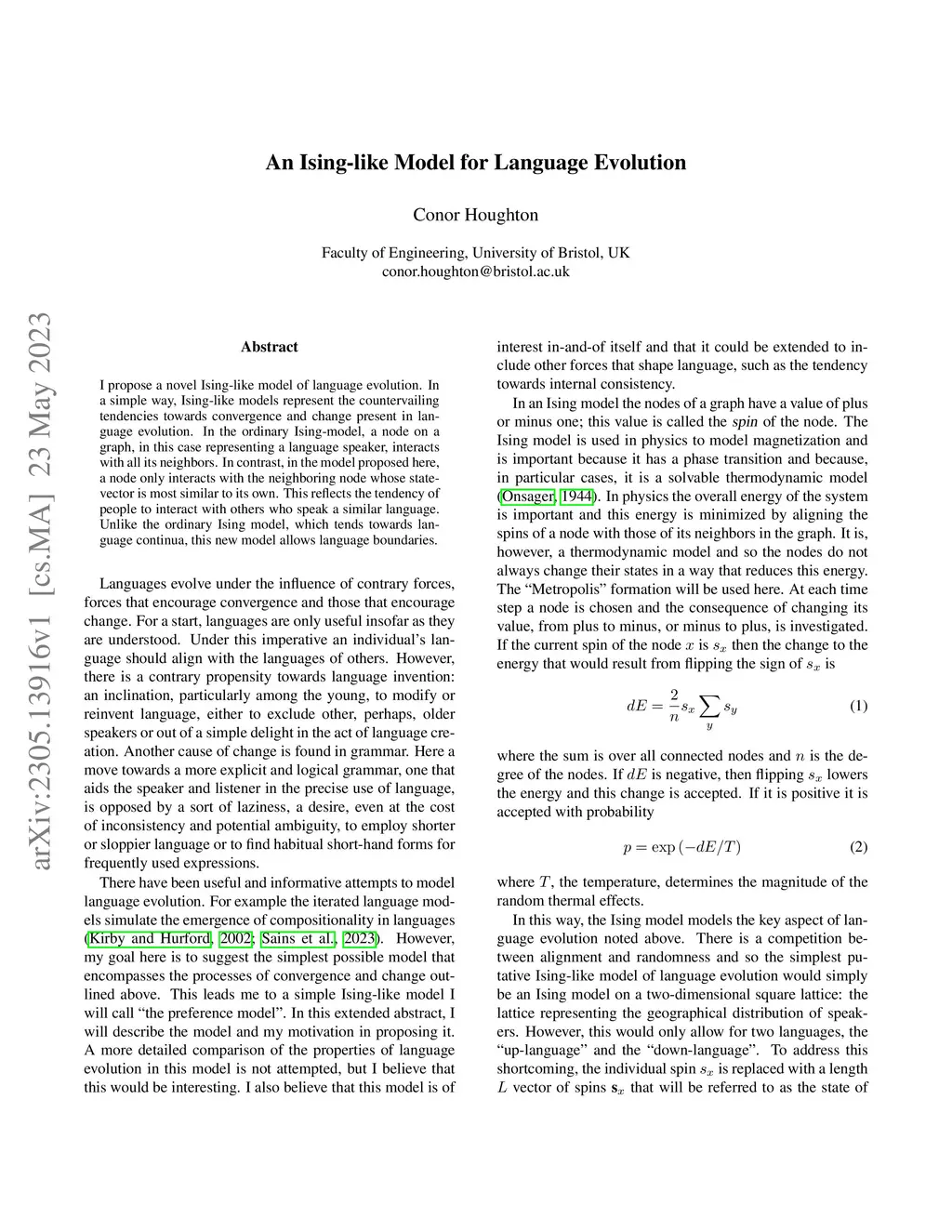 An Ising-like model for language evolution