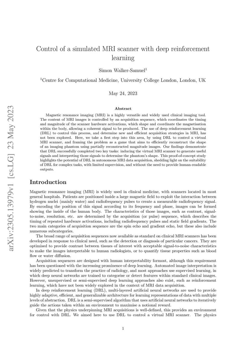 Magnetic resonance imaging (MRI) is a highly versatile and widely used clinical imaging tool. The content of MRI images is controlled by an acquisition sequence, which coordinates the timing and magnitude of the scanner hardware activations, which shape and coordinate the magnetisation within the body, allowing a coherent signal to be produced. The use of deep reinforcement learning (DRL) to control this process, and determine new and efficient acquisition strategies in MRI, has not been explored. Here, we take a first step into this area, by using DRL to control a virtual MRI scanner, and framing the problem as a game that aims to efficiently reconstruct the shape of an imaging phantom using partially reconstructed magnitude images. Our findings demonstrate that DRL successfully completed two key tasks: inducing the virtual MRI scanner to generate useful signals and interpreting those signals to determine the phantom's shape. This proof-of-concept study highlights the potential of DRL in autonomous MRI data acquisition, shedding light on the suitability of DRL for complex tasks, with limited supervision, and without the need to provide human-readable outputs.