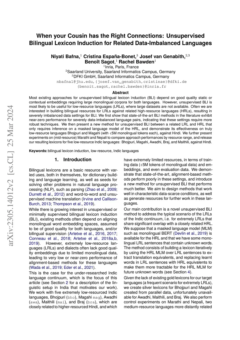When your Cousin has the Right Connections: Unsupervised Bilingual