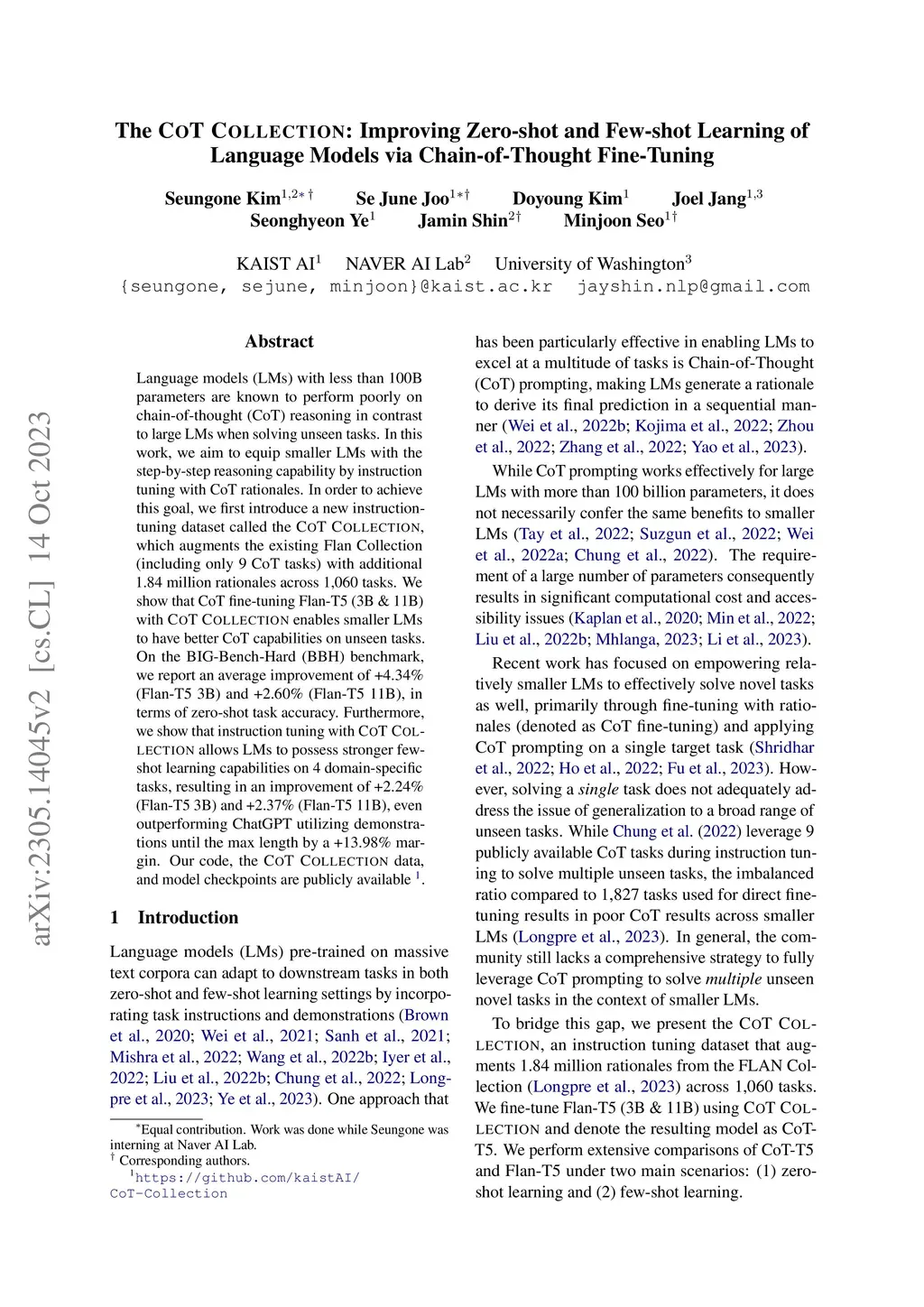 The CoT Collection: Improving Zero-shot and Few-shot Learning of