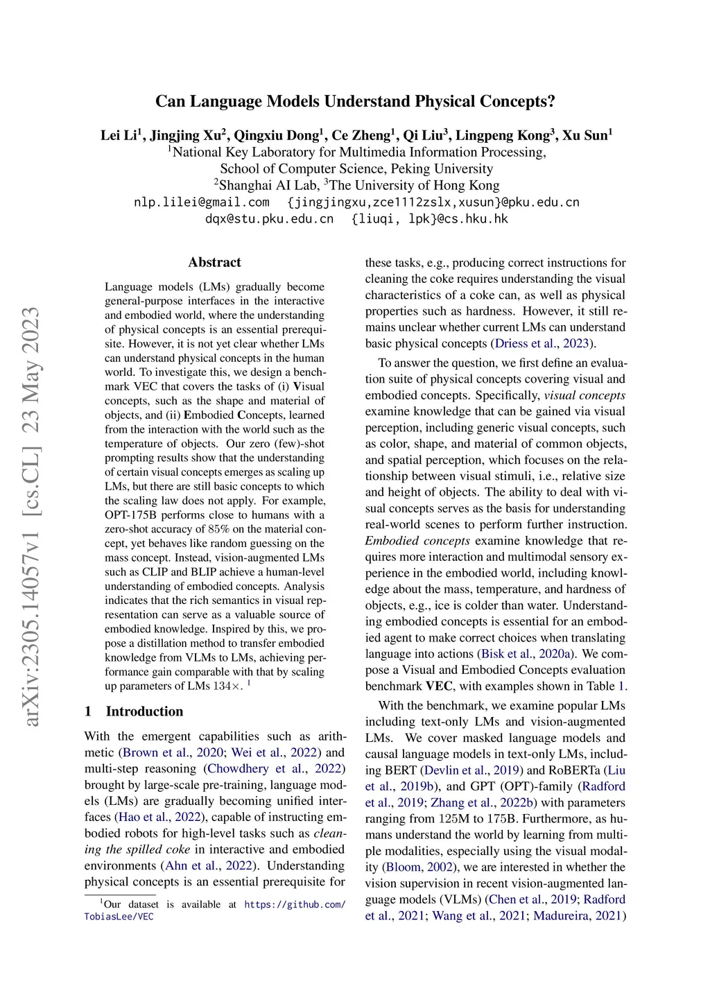 Can Language Models Understand Physical Concepts?