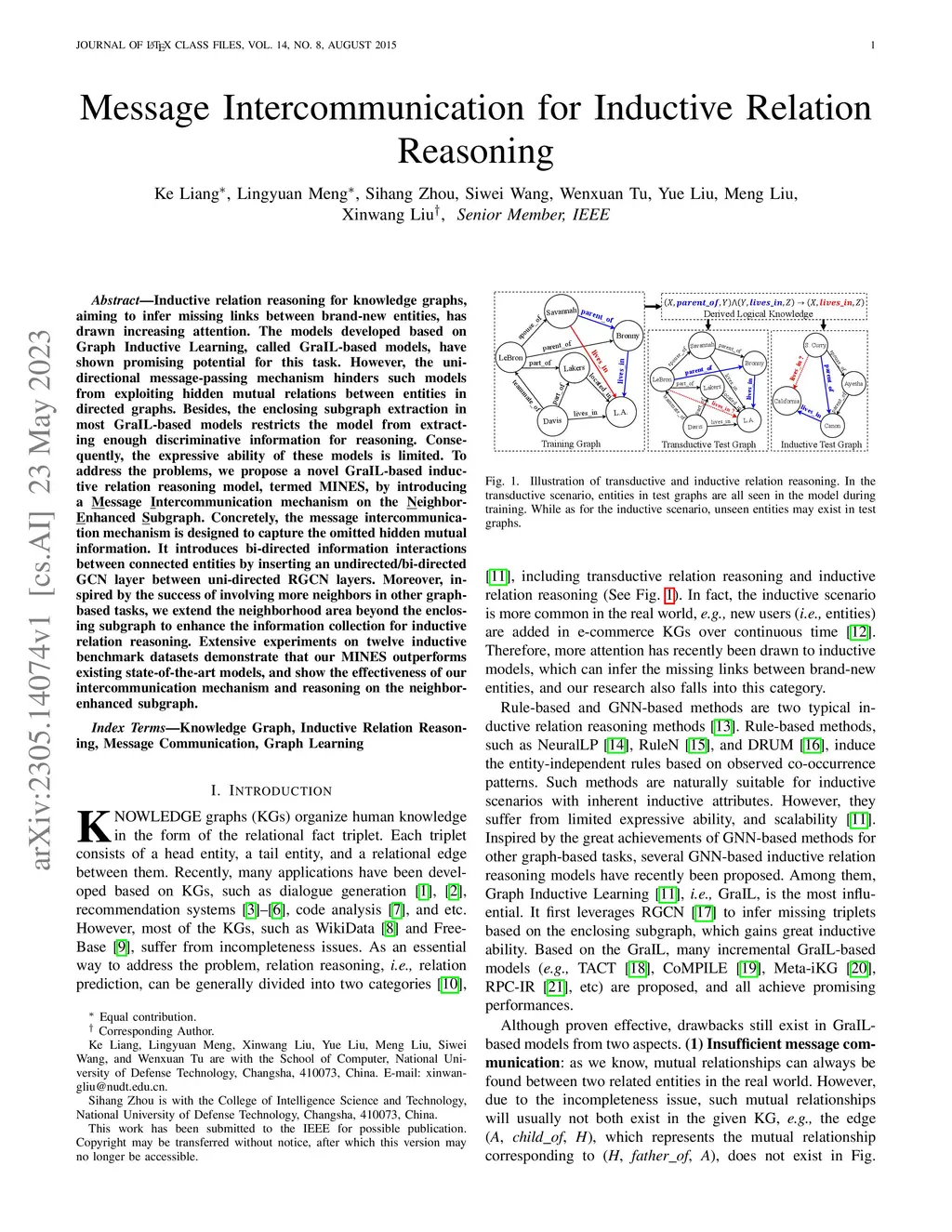 Message Intercommunication for Inductive Relation Reasoning