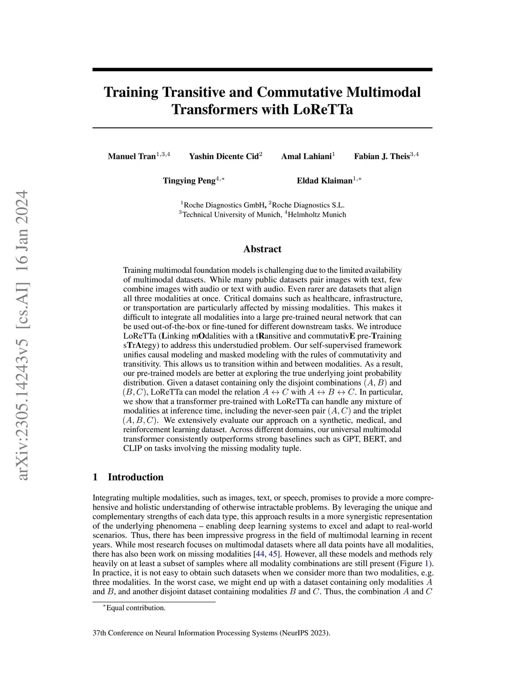 Training Transitive and Commutative Multimodal Transformers with LoReTTa