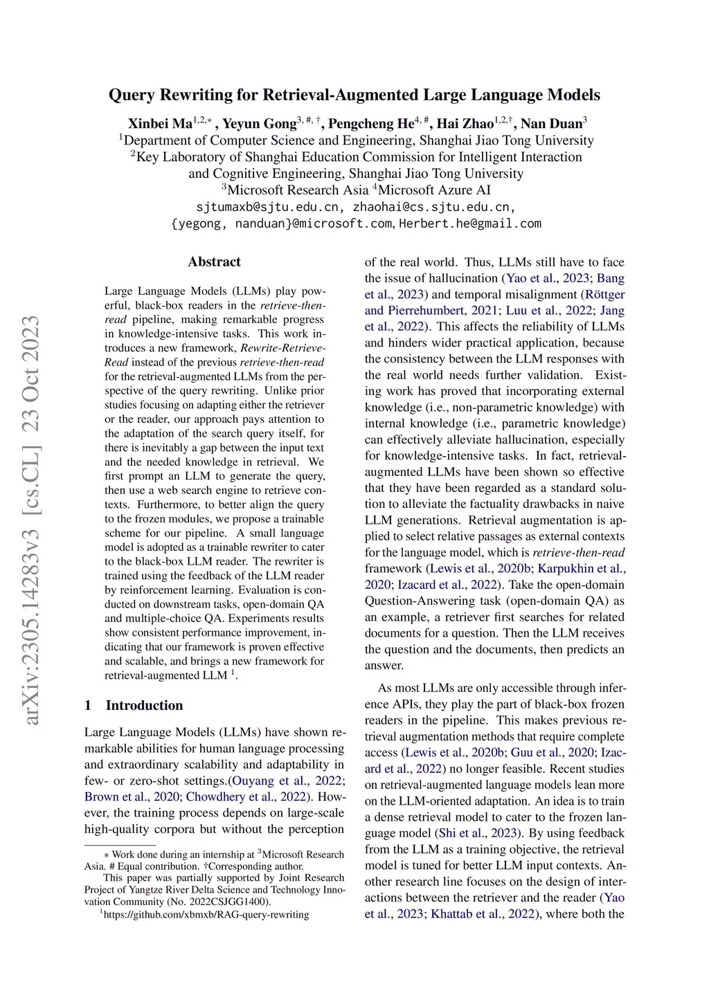 Query Rewriting for Retrieval-Augmented Large Language Models