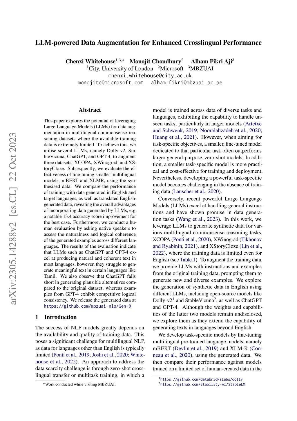 LLM-powered Data Augmentation for Enhanced Cross-lingual Performance