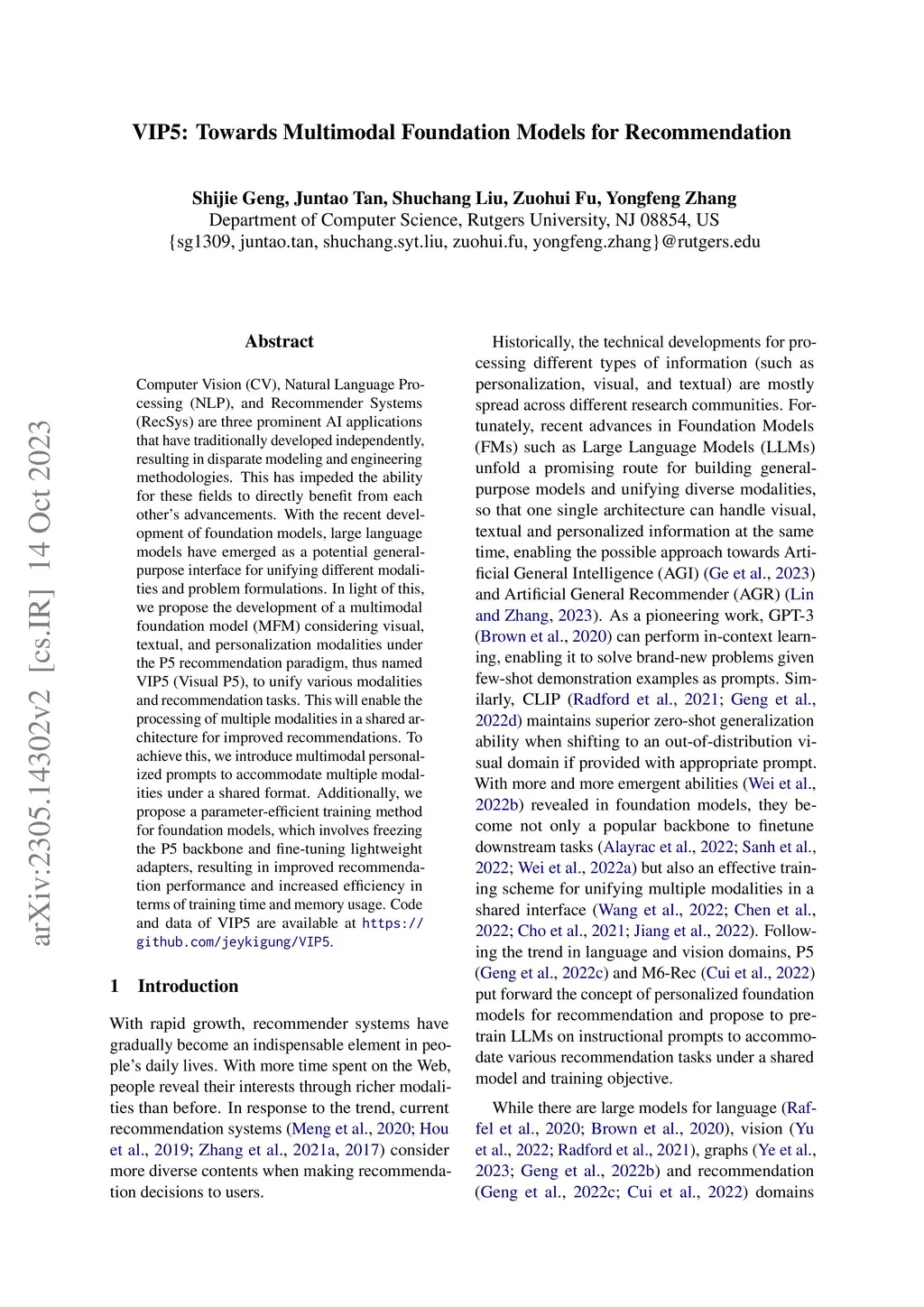 VIP5: Towards Multimodal Foundation Models for Recommendation