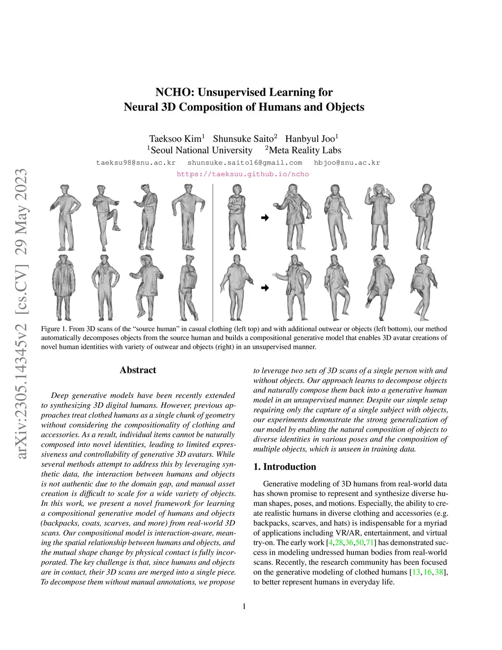 NCHO: Unsupervised Learning for Neural 3D Composition of Humans and