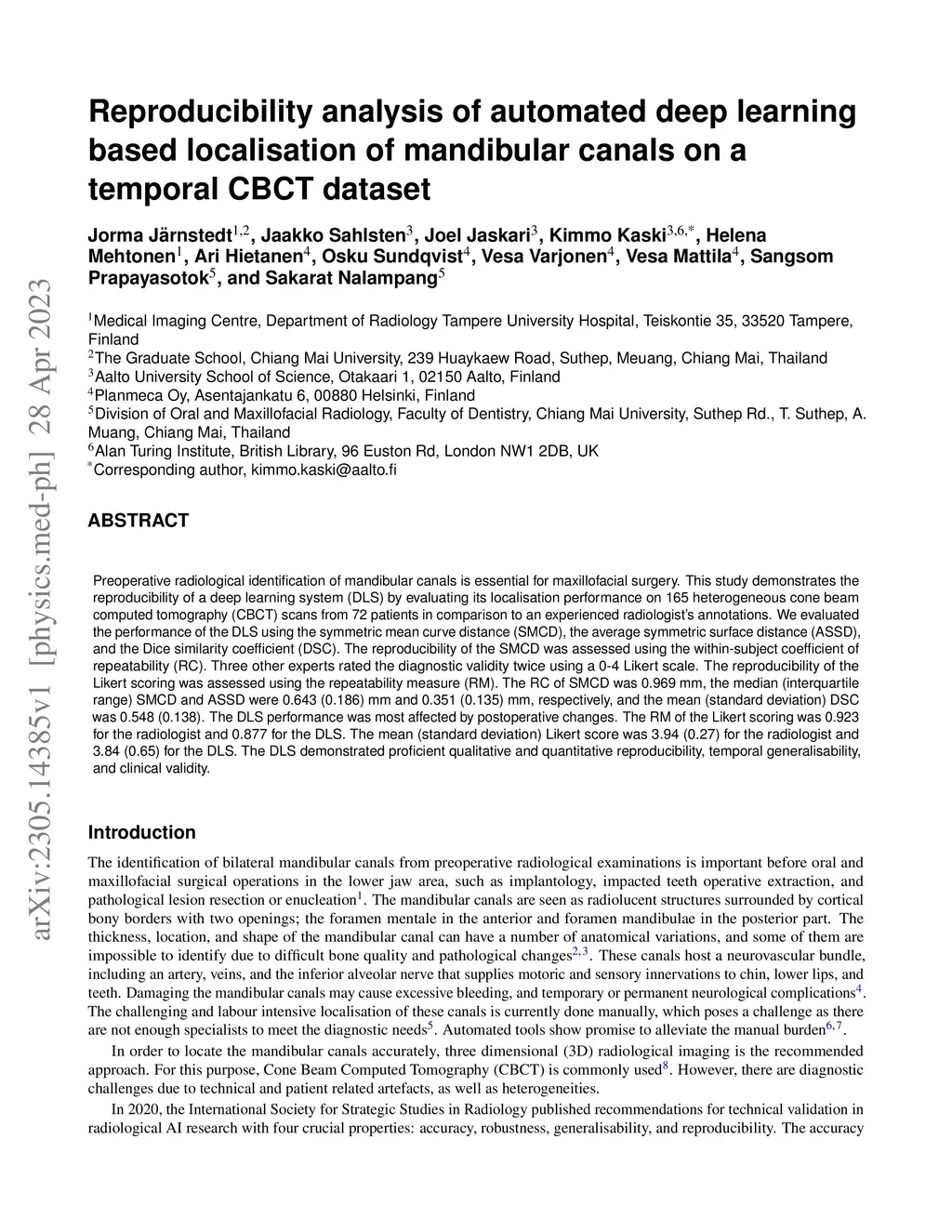 of mandibular canals on a temporal CBCT dataset