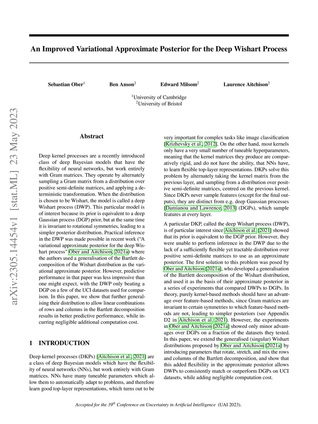 Deep kernel processes are a recently introduced class of deep Bayesian models that have the flexibility of neural networks, but work entirely with Gram matrices. They operate by alternately sampling a Gram matrix from a distribution over positive semi-definite matrices, and applying a deterministic transformation. When the distribution is chosen to be Wishart, the model is called a deep Wishart process (DWP). This particular model is of interest because its prior is equivalent to a deep Gaussian process (DGP) prior, but at the same time it is invariant to rotational symmetries, leading to a simpler posterior distribution. Practical inference in the DWP was made possible in recent work ("A variational approximate posterior for the deep Wishart process" Ober and Aitchison 2021a) where the authors used a generalisation of the Bartlett decomposition of the Wishart distribution as the variational approximate posterior. However, predictive performance in that paper was less impressive than one might expect, with the DWP only beating a DGP on a few of the UCI datasets used for comparison. In this paper, we show that further generalising their distribution to allow linear combinations of rows and columns in the Bartlett decomposition results in better predictive performance, while incurring negligible additional computation cost.