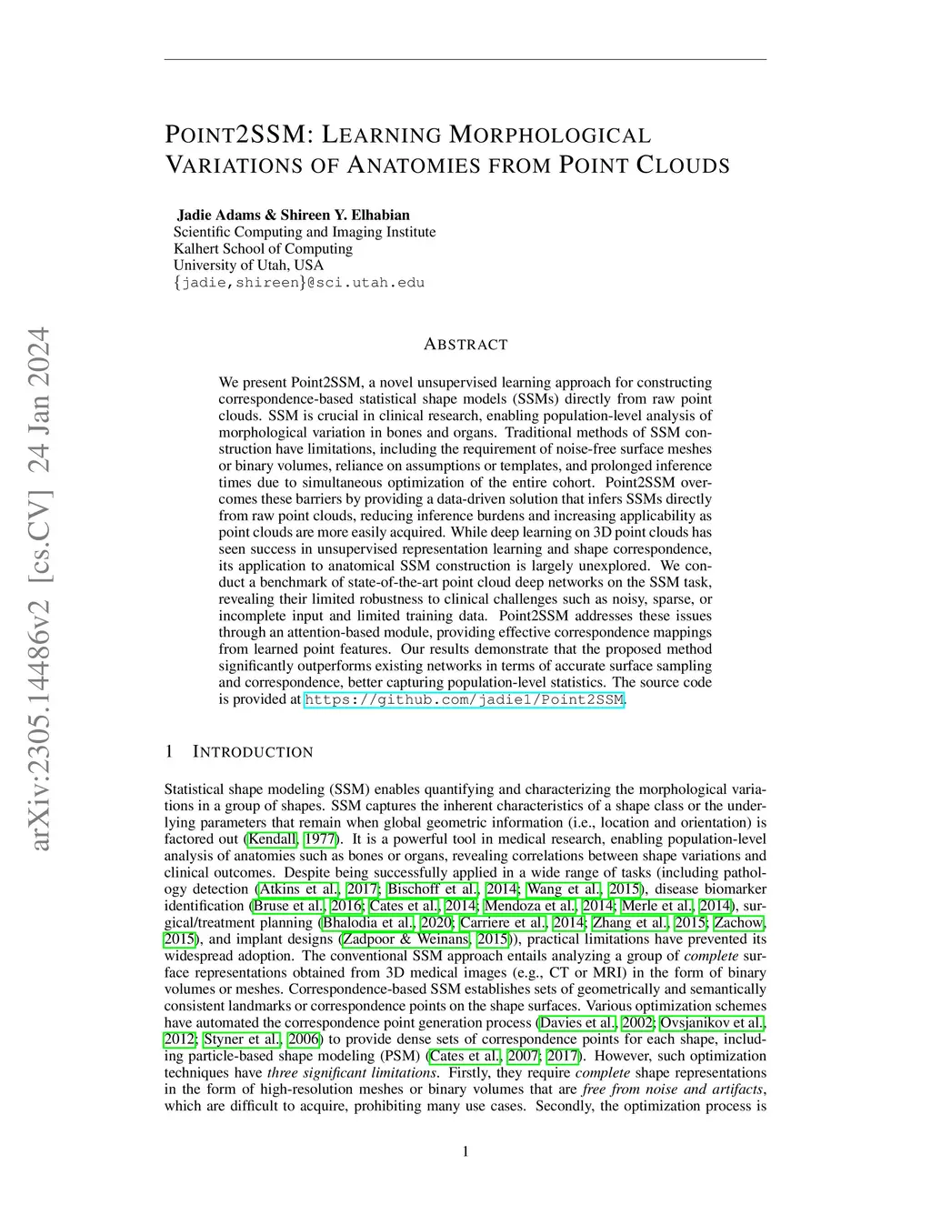 Point2SSM: Learning Morphological Variations of Anatomies from Point