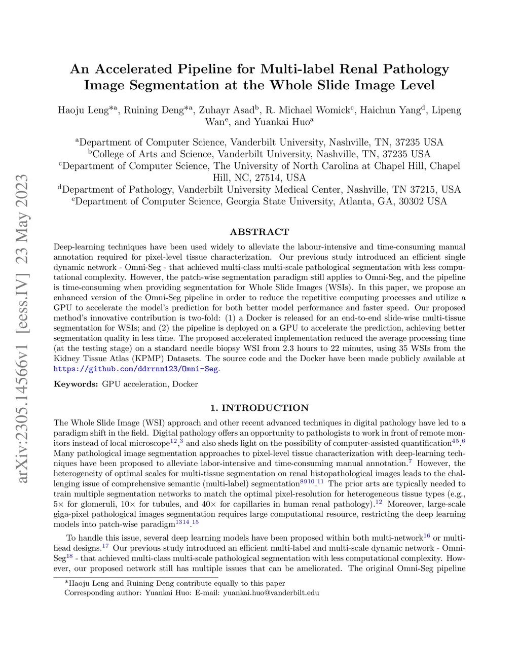 An Accelerated Pipeline for Multi-label Renal Pathology Image