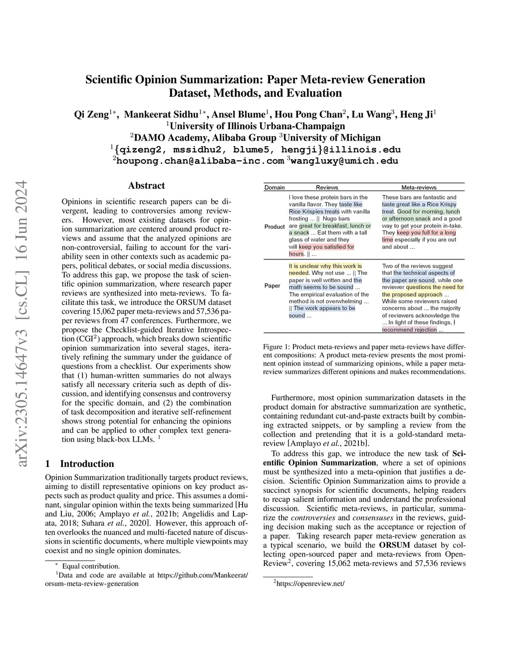 Scientific Opinion Summarization: Paper Meta-review Generation Dataset,