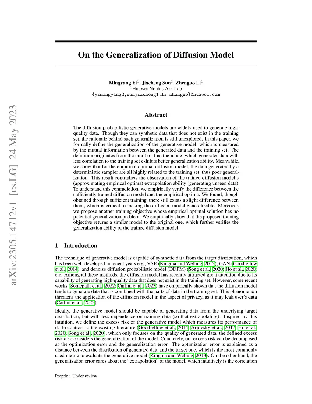 The diffusion probabilistic generative models are widely used to generate high-quality data. Though they can synthetic data that does not exist in the training set, the rationale behind such generalization is still unexplored. In this paper, we formally define the generalization of the generative model, which is measured by the mutual information between the generated data and the training set. The definition originates from the intuition that the model which generates data with less correlation to the training set exhibits better generalization ability. Meanwhile, we show that for the empirical optimal diffusion model, the data generated by a deterministic sampler are all highly related to the training set, thus poor generalization. This result contradicts the observation of the trained diffusion model's (approximating empirical optima) extrapolation ability (generating unseen data). To understand this contradiction, we empirically verify the difference between the sufficiently trained diffusion model and the empirical optima. We found, though obtained through sufficient training, there still exists a slight difference between them, which is critical to making the diffusion model generalizable. Moreover, we propose another training objective whose empirical optimal solution has no potential generalization problem. We empirically show that the proposed training objective returns a similar model to the original one, which further verifies the generalization ability of the trained diffusion model.