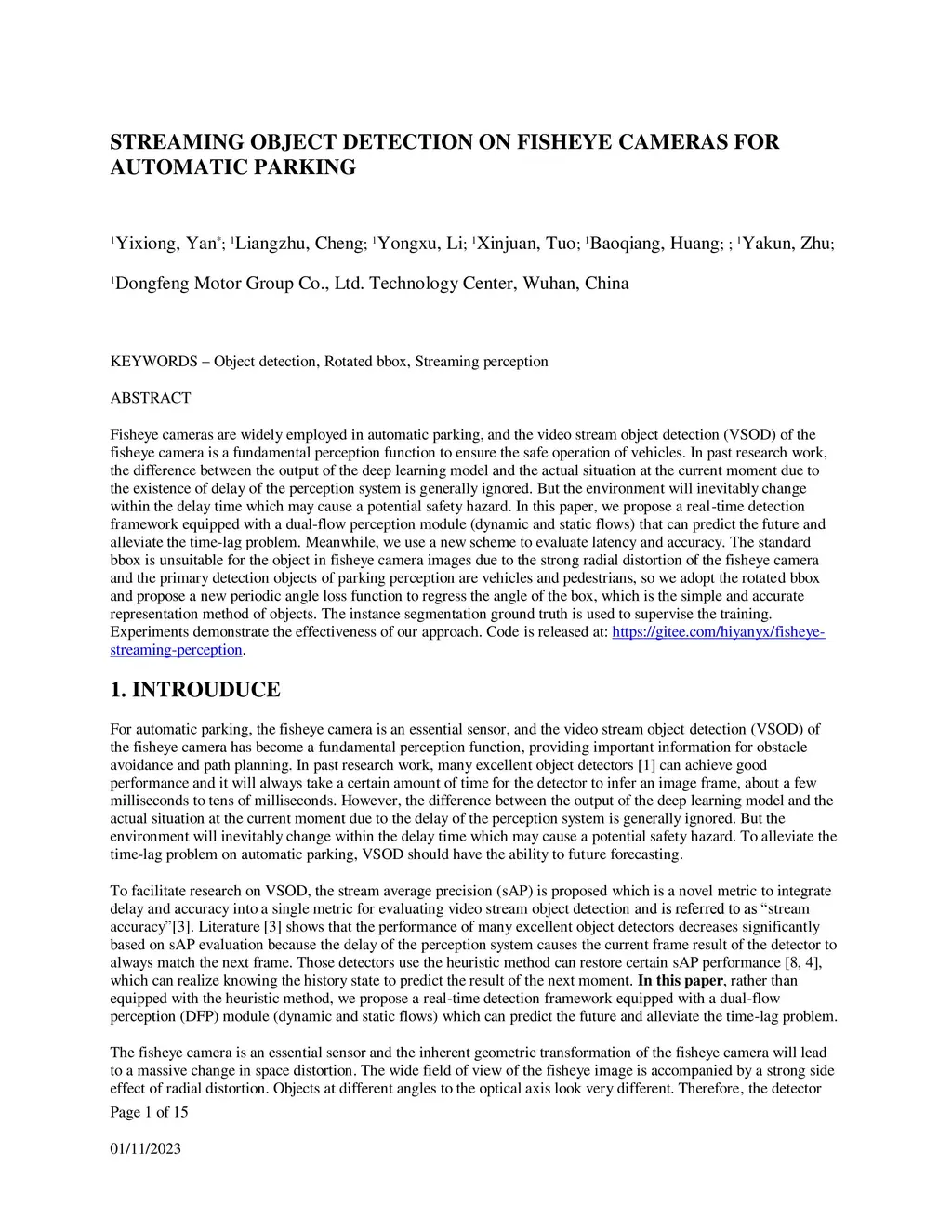 Streaming Object Detection on Fisheye Cameras for Automatic Parking