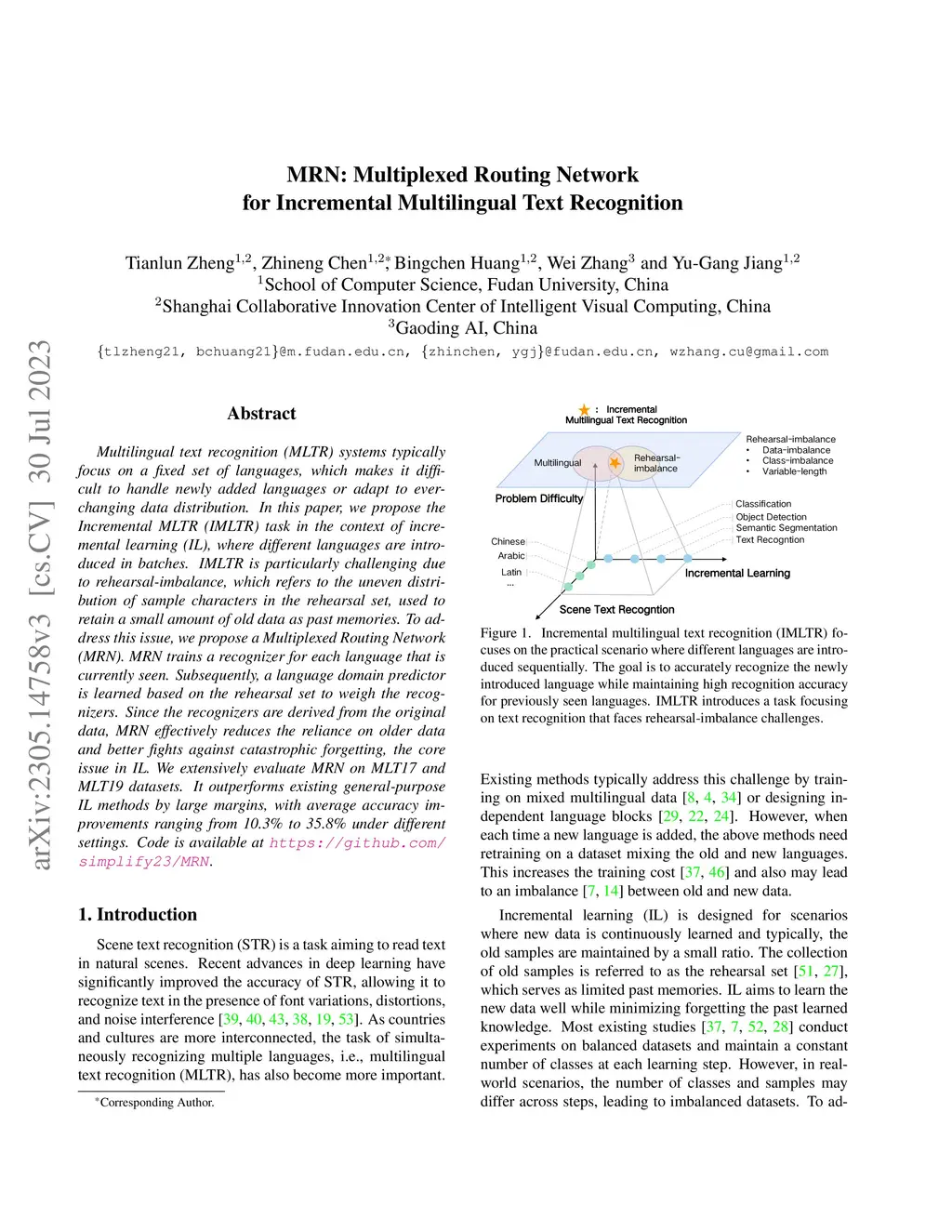 MRN: Multiplexed Routing Network for Incremental Multilingual Text