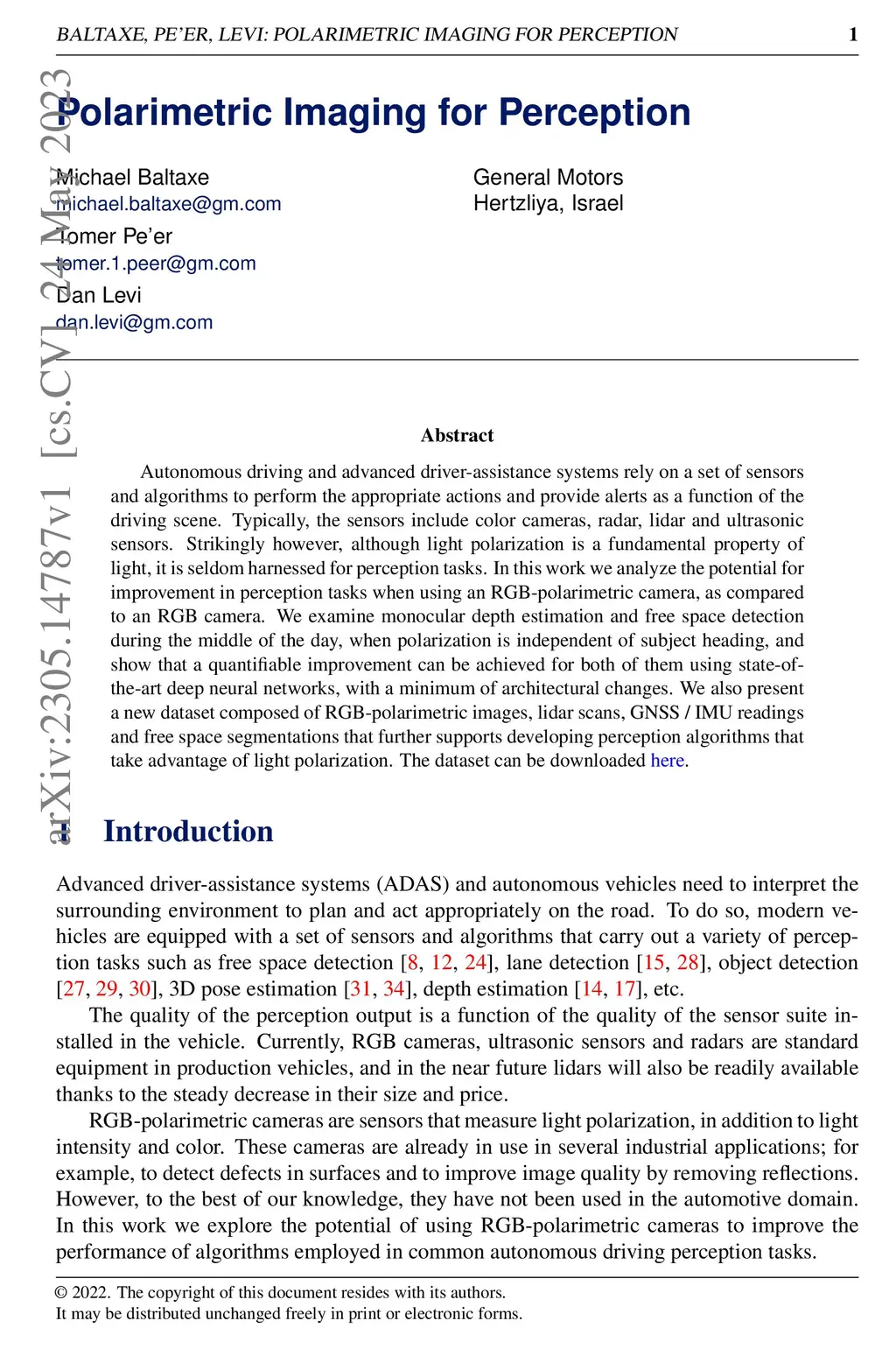 Polarimetric Imaging for Perception