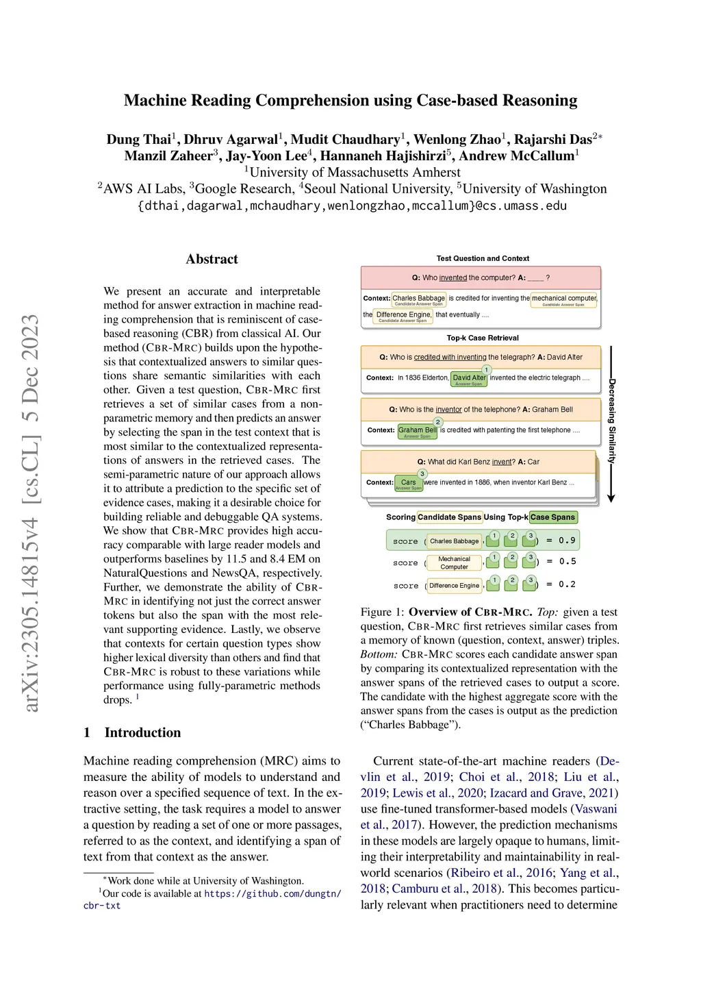 Machine Reading Comprehension using Case-based Reasoning
