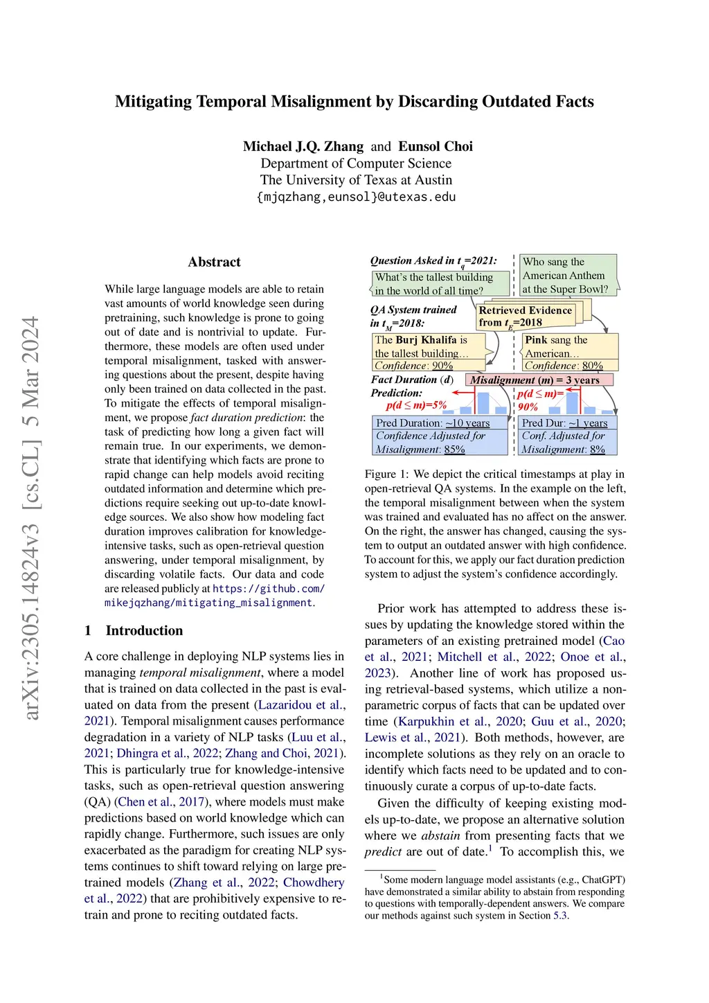 Mitigating Temporal Misalignment by Discarding Outdated Facts