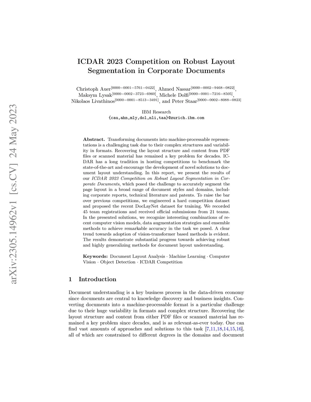 ICDAR 2023 Competition on Robust Layout Segmentation in Corporate