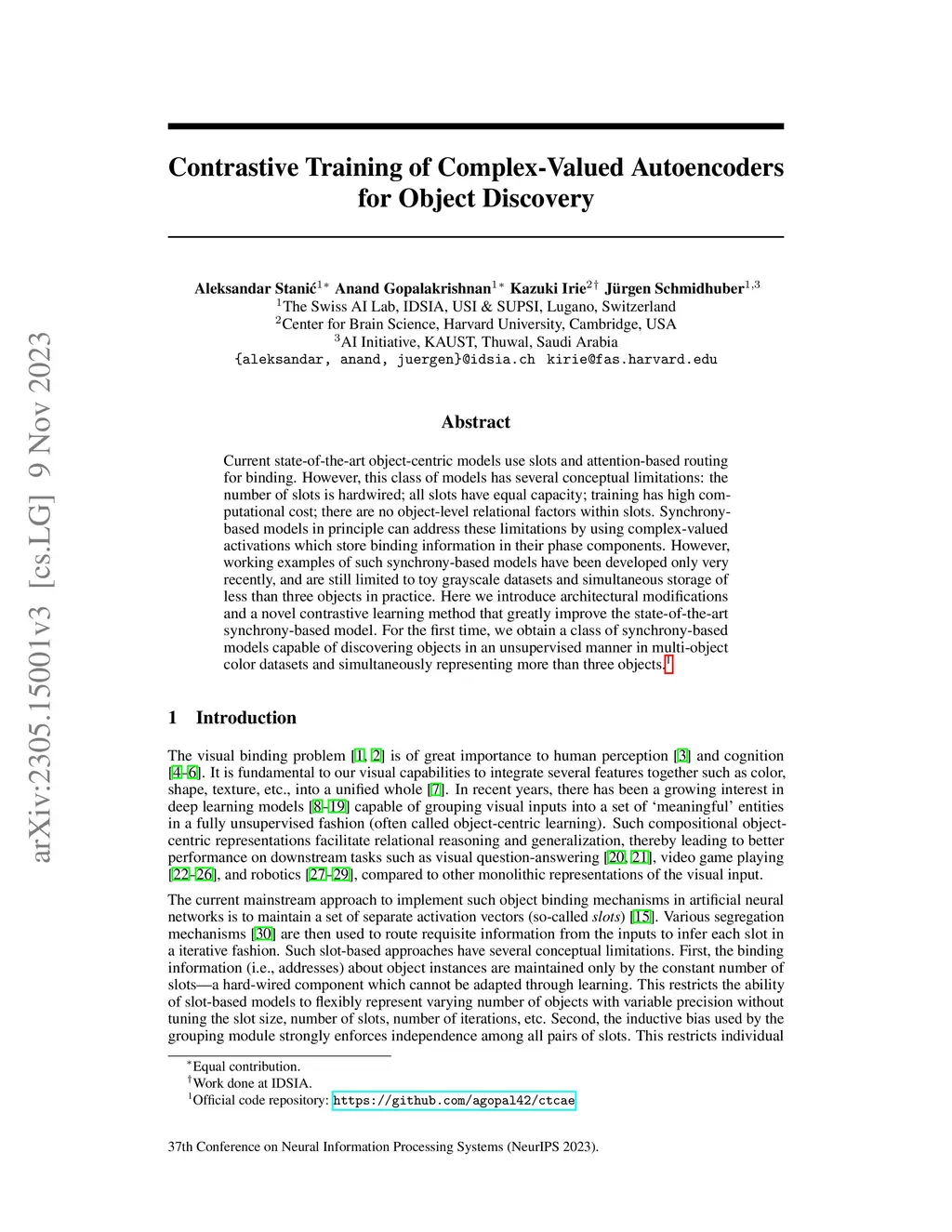 Contrastive Training of Complex-Valued Autoencoders for Object Discovery