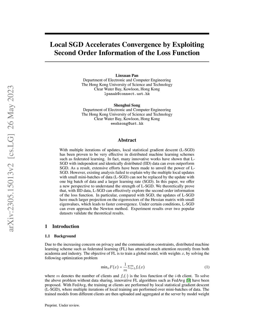 With multiple iterations of updates, local statistical gradient descent (L-SGD) has been proven to be very effective in distributed machine learning schemes such as federated learning. In fact, many innovative works have shown that L-SGD with independent and identically distributed (IID) data can even outperform SGD. As a result, extensive efforts have been made to unveil the power of L-SGD. However, existing analysis failed to explain why the multiple local updates with small mini-batches of data (L-SGD) can not be replaced by the update with one big batch of data and a larger learning rate (SGD). In this paper, we offer a new perspective to understand the strength of L-SGD. We theoretically prove that, with IID data, L-SGD can effectively explore the second order information of the loss function. In particular, compared with SGD, the updates of L-SGD have much larger projection on the eigenvectors of the Hessian matrix with small eigenvalues, which leads to faster convergence. Under certain conditions, L-SGD can even approach the Newton method. Experiment results over two popular datasets validate the theoretical results.