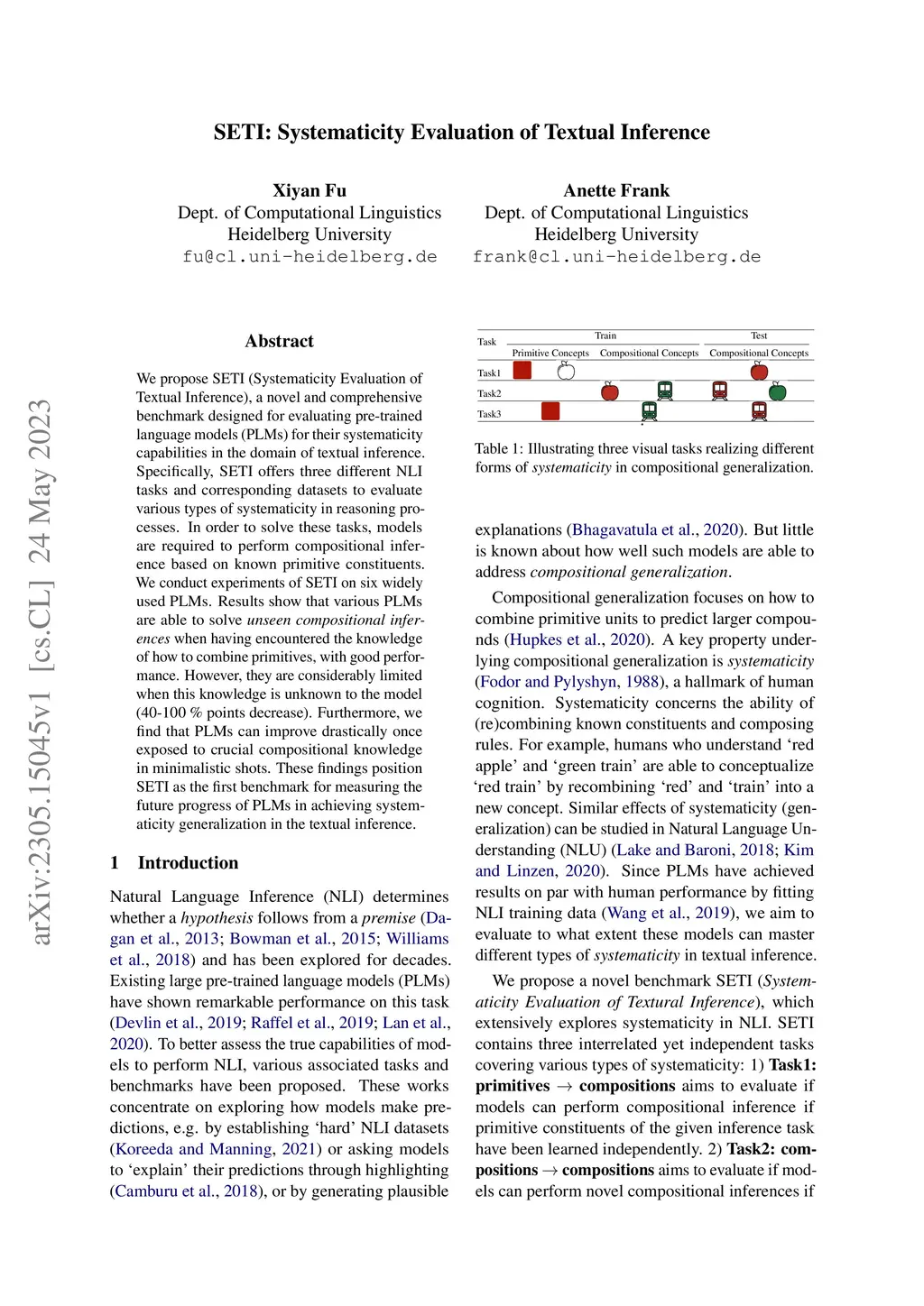 We propose SETI (Systematicity Evaluation of Textual Inference), a novel and comprehensive benchmark designed for evaluating pre-trained language models (PLMs) for their systematicity capabilities in the domain of textual inference. Specifically, SETI offers three different NLI tasks and corresponding datasets to evaluate various types of systematicity in reasoning processes. In order to solve these tasks, models are required to perform compositional inference based on known primitive constituents. We conduct experiments of SETI on six widely used PLMs. Results show that various PLMs are able to solve unseen compositional inferences when having encountered the knowledge of how to combine primitives, with good performance. However, they are considerably limited when this knowledge is unknown to the model (40-100% points decrease). Furthermore, we find that PLMs can improve drastically once exposed to crucial compositional knowledge in minimalistic shots. These findings position SETI as the first benchmark for measuring the future progress of PLMs in achieving systematicity generalization in the textual inference.
