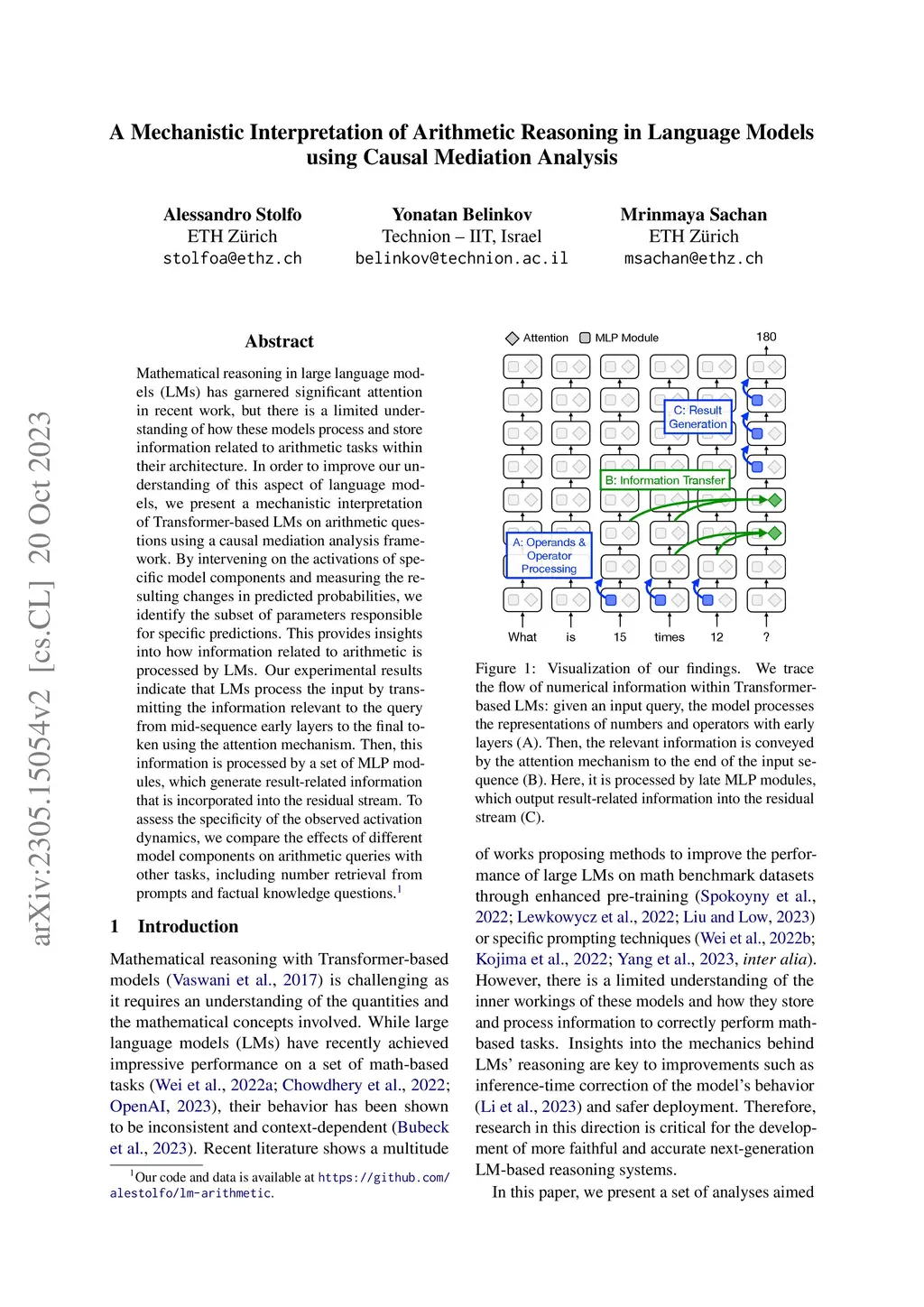 A Mechanistic Interpretation of Arithmetic Reasoning in Language Models