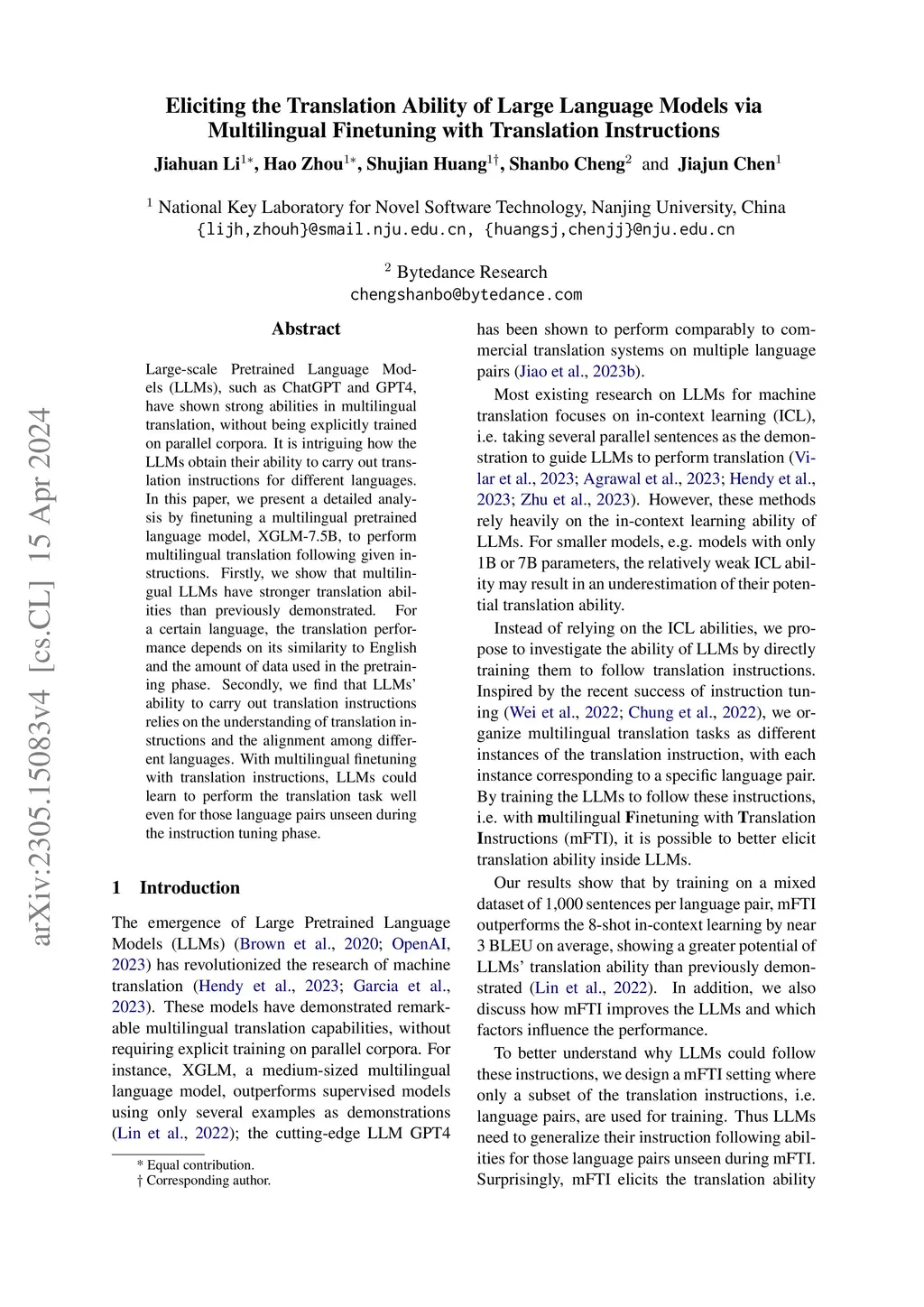 Large-scale Pretrained Language Models (LLMs), such as ChatGPT and GPT4, have shown strong abilities in multilingual translations, without being explicitly trained on parallel corpora. It is interesting how the LLMs obtain their ability to carry out translation instructions for different languages. In this paper, we present a detailed analysis by finetuning a multilingual pretrained language model, XGLM-7B, to perform multilingual translation following given instructions. Firstly, we show that multilingual LLMs have stronger translation abilities than previously demonstrated. For a certain language, the performance depends on its similarity to English and the amount of data used in the pretraining phase. Secondly, we find that LLMs' ability to carry out translation instructions relies on the understanding of translation instructions and the alignment among different languages. With multilingual finetuning, LLMs could learn to perform the translation task well even for those language pairs unseen during the instruction tuning phase.