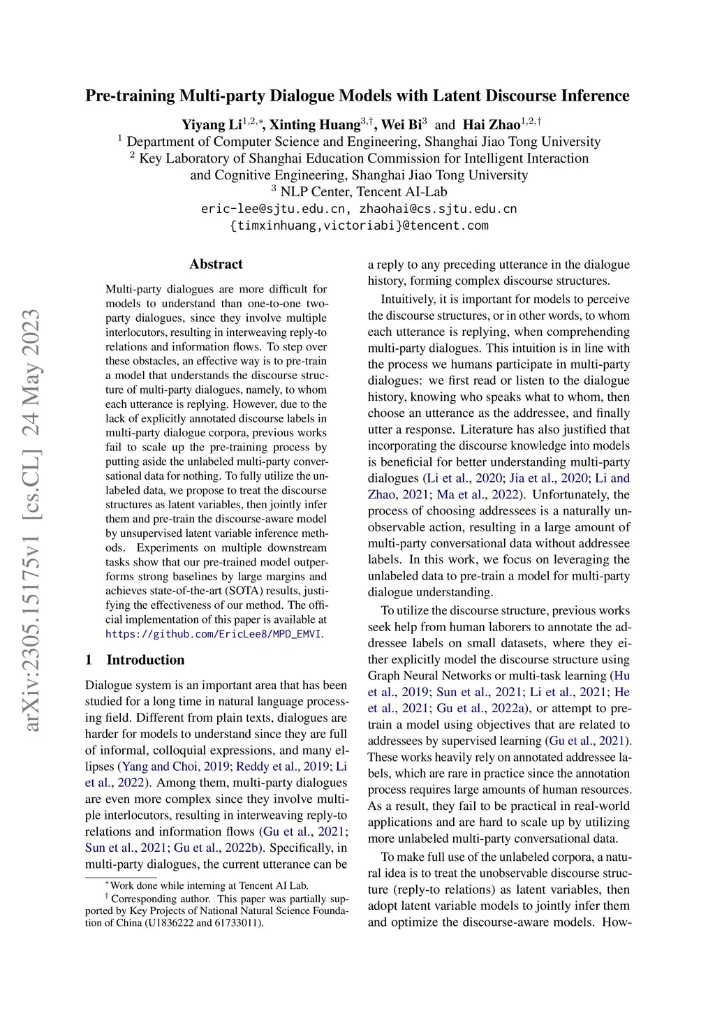 Pre-training Multi-party Dialogue Models with Latent Discourse Inference